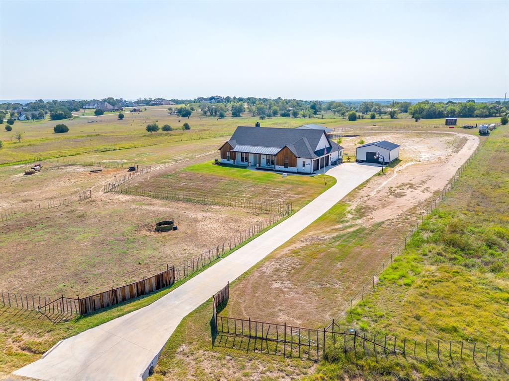 Peaster ISD Home on Acreage WITHOUT the HOA! A truly move in ready Country Living Home with Horse Barn, horse stalls, cross fenced AND Workshop! The Horse barn is currently set up as a 3 Stall with runs extending past the large overhang & has power! Metal Shop on slab pad with power measures 30x20 - if you have projects then this is the place to be! This custom built KW Home offers a fantastic life friendly layout! Open plan gourmet Kitchen with gas cooktop - with pot filler, double ovens, farmhouse sink & huge Island is beautiful then add in the massive walk in pantry... as if that isn't amazing enough to store all the best treats - you have a FULL BUTLERS PANTRY suite tucked away off the Kitchen, complete with second sink, drinks station & more storage than you could dream of! The home office, with closet, overlooks the beautiful front acreage & is hidden by the custom built barn sliding door. Split Bedrooms, walkthrough Primary Closet connected to the Laundry room, located conveniently off the mudroom entry area from your HUGE 3 car garage. The private guest bedrooms each have their own vanity & walk in closet, with Jack & Jill Bath shower toilet combo. Cleverly planned half bath is situated at the rear of the home offering privacy AND a perfect location should you wish to add a pool! The covered back patio is the chef's kiss with its views of the horse barn while tucked under the shade with corner wood burning fireplace. If you are looking for the true custom home feel instead of settling on a spec home, without the added restrictions of a HOA then this is the one you want to hurry up and see! Bring the horses & start enjoying true countryside lifestyle today.
