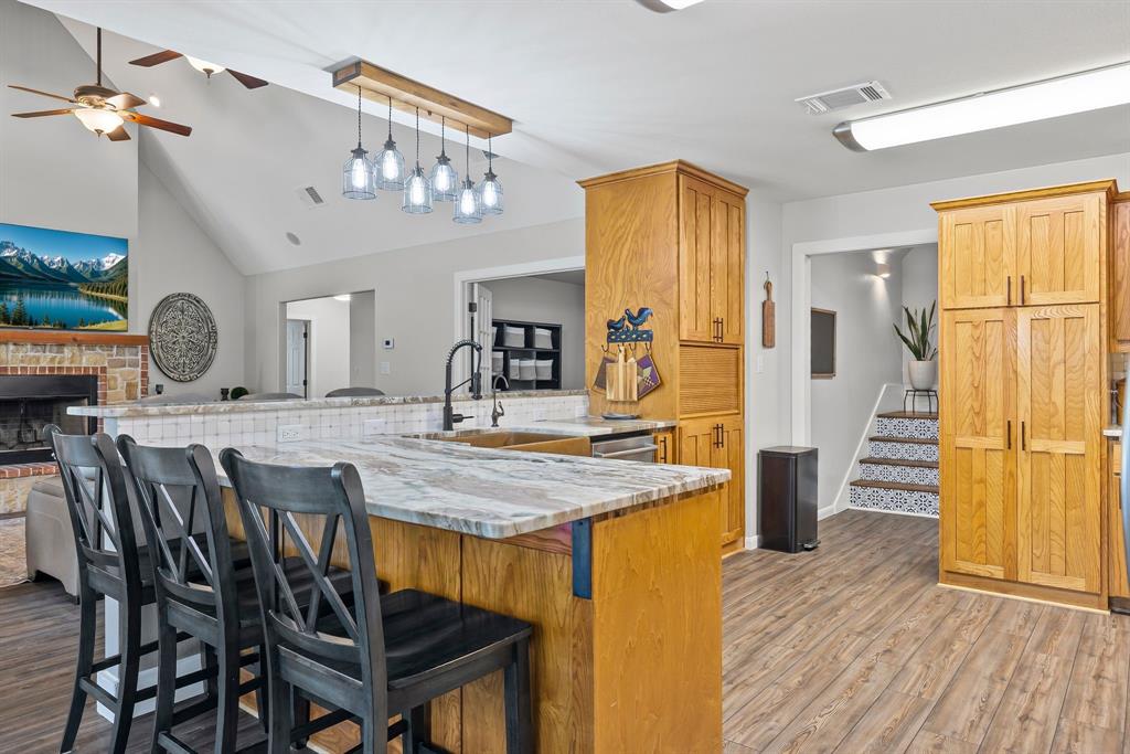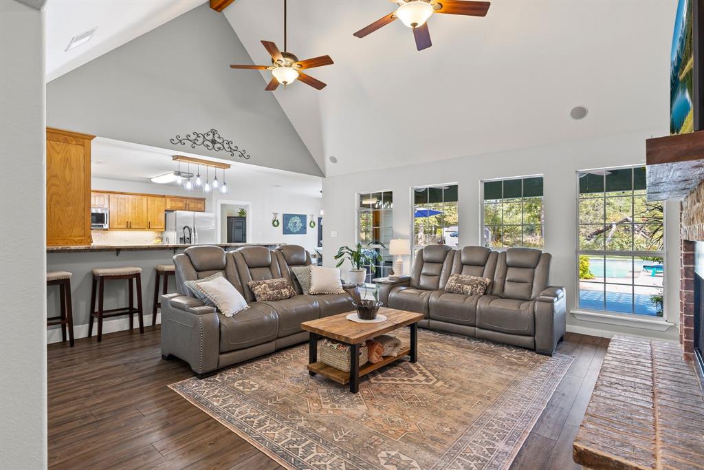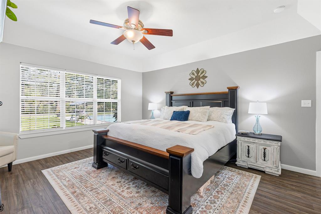 *Multiple offers received. Best and final offers are due Monday Sept 22 by 5pm.* Welcome to the home you've been searching for, located in the desirable Pleasant Grove Estates. This immaculate 4 bedroom, 2.5 bath custom built home sits on an oversized, shaded lot with tons of curb appeal. Inside, you're welcomed by a flood of natural light streaming from the wall of windows and a view of the backyard oasis, with a sparkling in ground swimming pool. The view, the grand vaulted beamed ceiling and dual fuel fireplace make for a cozy space you won't want to leave. Open to the living room, the kitchen boasts stunning quartzite countertops and extra bar seating, perfect for entertaining. Stainless steel appliances, a unique copper sink and tons of cabinets, including an appliance garage, will please any home chef. The primary suite offers his and her closets and an updated primary bath including dual vanities with limestone countertops, a jetted tub and separate shower. A split bedroom floor plan is perfect for the modern family with 3 generously sized bedrooms and updated bathroom on the opposite side of the home. Laundry isn't a chore in the beautifully designed laundry room with extra cabinets, a utility sink and folding counter. Create a space for work, school or play in the designated office or bonus room upstairs. Outdoor living and entertaining is a breeze under the covered porch that overlooks the massive 8.5 foot deep salt water pool and gorgeous landscaped backyard. The garden enthusiast will be in heaven with the abundance of plants, including a row of blackberry bushes along the front fence. LVP flooring throughout, fresh paint inside and out, a new roof, gutters and tankless hot water heater are some of the additional updates a new homeowner will enjoy in this impressive home!