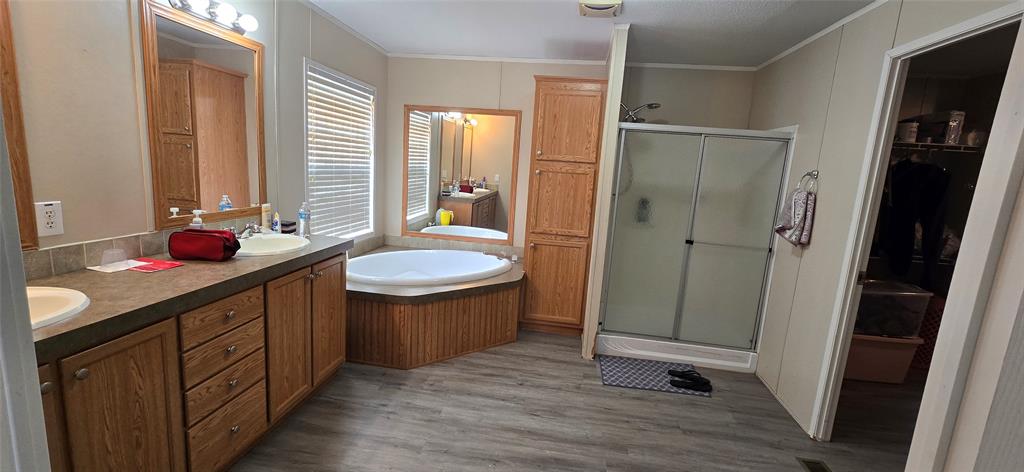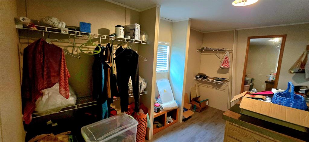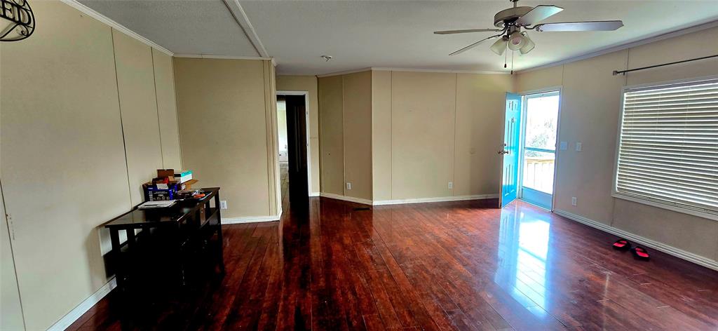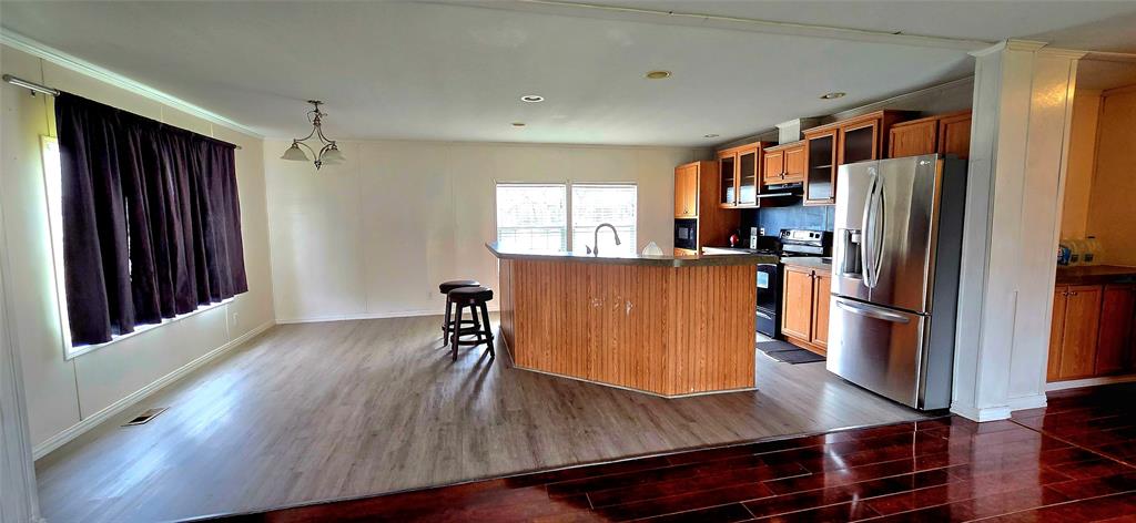 Large open kitchen with island breakfast bar and lots of cabinets. Spacious yard and Peaceful country style living on the land. Front Porch, back porch and laundry room entrances. Both living rooms are Very large. A Great set up for a mother in law suite with the primary having its own private entrance, living area, and bedroom all at one end of the home. New tile floor in hall bathroom. New waterproof, Luxury plank, waterproof flooring in the Primary bathroom, closet, and the Kitchen. Huge walk in closet in the primary room. Separate shop area with covered carport. Huge mature trees surrounding the property.