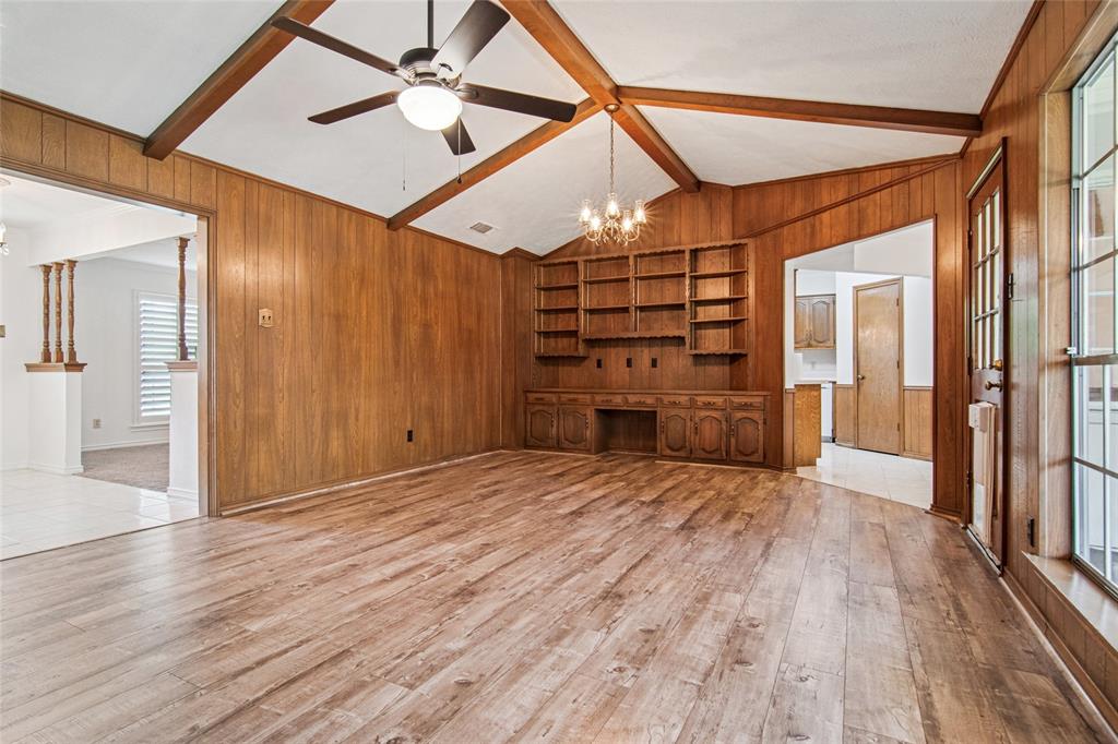 Wonderful family home in East Richardson that just needs your personal touch to make it shine. This one story, four bedroom, two and one half bath home is filled with space and possibilities. Interior recently painted, $35,000 has been spent replacing cast iron pipes with PVC, and Foundation repaired with a lifetime warranty. Large living areas including the Sunroom and 2 dining areas make this home great for entertaining. Plantation shutters, vaulted ceilings with wood beams, brick wood burning fireplace are just some of the features. The shed in back will stay. Located in the friendly neighborhood of Woodhaven, it offers easy access to I 75, local amenities, parks, and GREAT RISD schools providing a perfect blend of comfort and convenience.