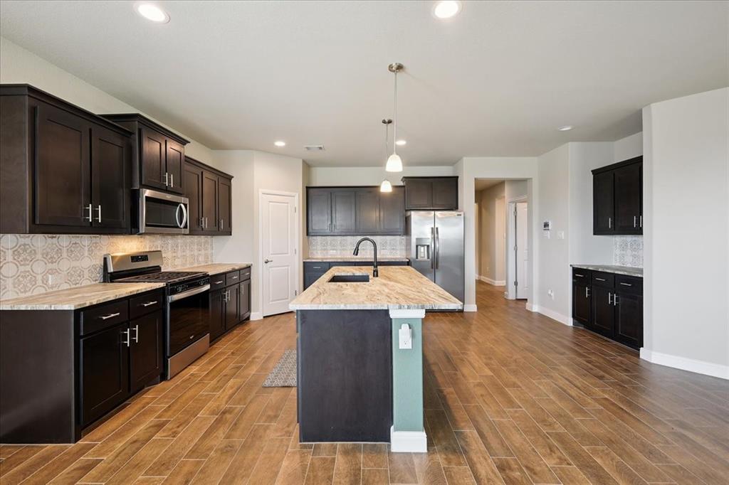 Immaculate 4-Bedroom Home with Premium Lot and Designer Upgrades! Welcome to this beautifully maintained 4-bedroom, 2-bathroom home that feels like new and showcases true pride of ownership. Situated on a premium lot facing a peaceful greenspace, it offers tranquil views and added privacy—ideal for morning coffee or evening unwinding. Step inside to an open-concept layout filled with natural light and modern finishes. The chef-inspired kitchen is a showstopper, featuring luxurious leathered granite countertops, an upgraded tile backsplash, under-cabinet lighting, and a sleek single basin Blanco sink. Whether you're hosting or meal prepping, this space blends style and function effortlessly. A cozy built-in office nook provides the perfect spot for remote work, homework, or daily planning—tucked away yet easily accessible. The spacious primary suite is a true retreat, complete with a renovated ensuite bathroom and generous closet space. Out back, enjoy your private oasis with an extended covered patio—perfect for year-round dining and lounging. A large shed adds extra storage, complementing the abundant cabinetry and closet space throughout the home. From top to bottom, this home has been thoughtfully upgraded and meticulously cared for. With its unbeatable location, premium lot, and stylish finishes, it’s truly move-in ready and waiting for you.