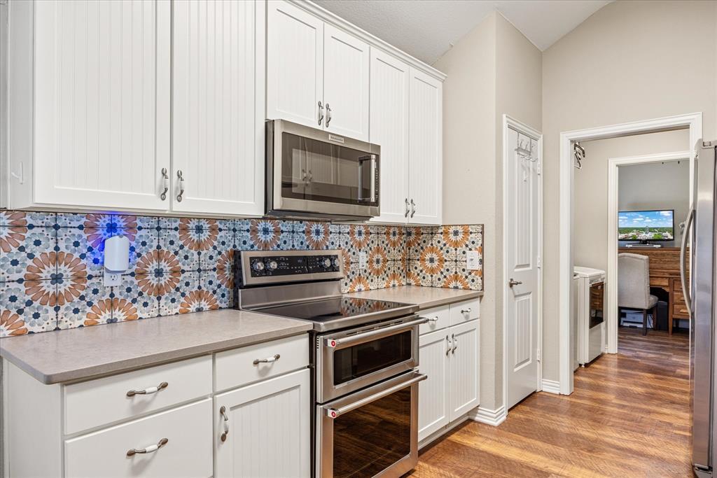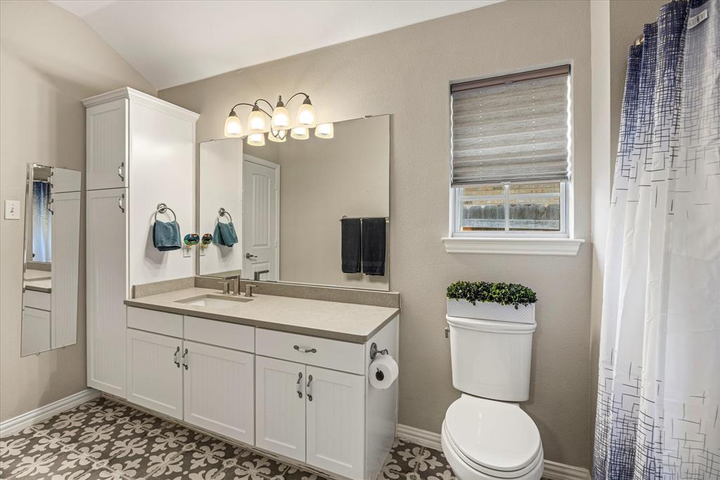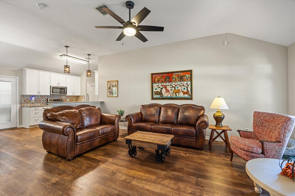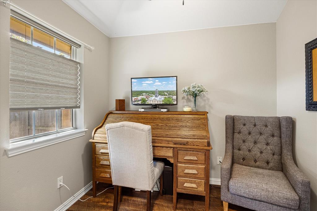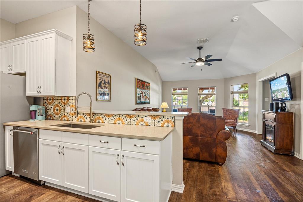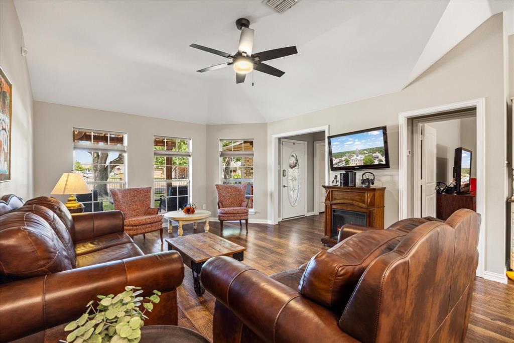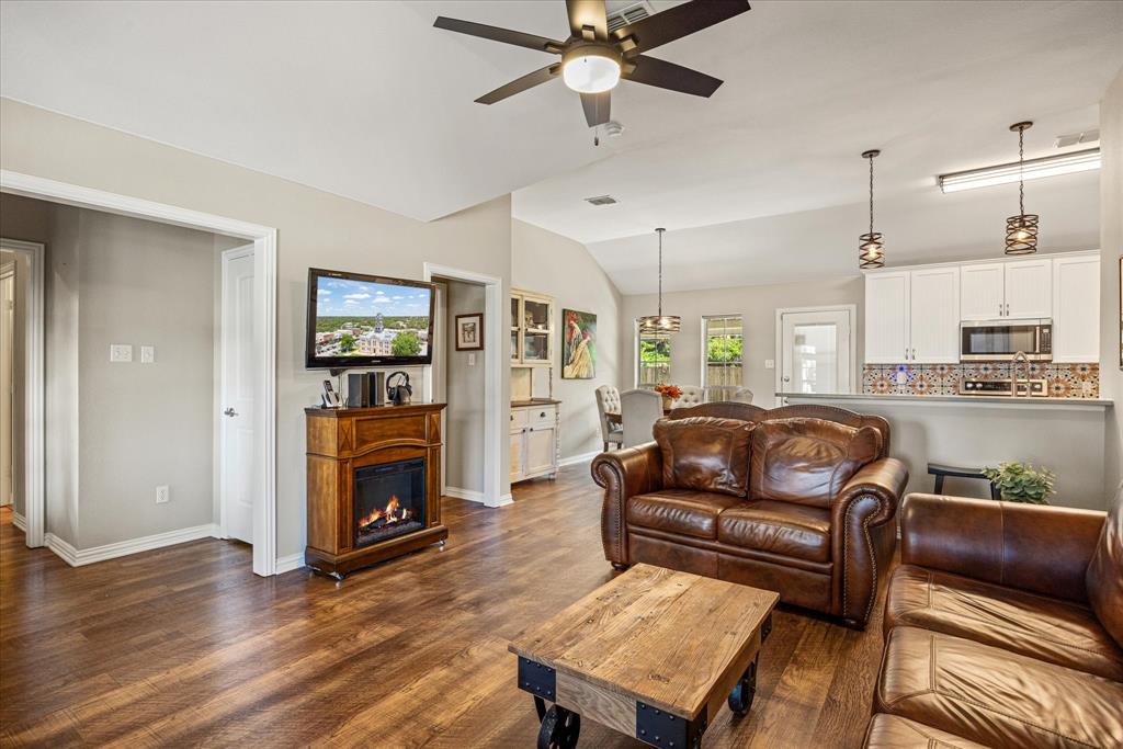 Updates Galore - in this beautiful 2 bedroom, 2 bath home with a flex room located in the highly sought after Heather Place. In the past four years many upscale upgrades: luxury vinyl plank throughout home, tile in both bathrooms, most lighting including ceiling fans, hot water heater, HVAC, energy efficient foam insulation in attic, interior paint including baseboards and cabinets and custom accordion blinds, Kitchen enhancements: quartz countertops, modern sink, faucets and stylish backsplash, Bathrooms: quartz countertops, new sinks, faucets and commodes. - NO HOA!! - The flex room could be utilized for a multitude of uses including hobby, office or a man cave. The attractive drive up appeal was enhanced with a pergola, stone stamped cement and wrought iron fencing (professionally designed). Located at the end of a cul de sac street this one story quiet peaceful home is so inviting. This charming home is centrally located, offering easy access to Granbury's historic downtown, where you can explore charming shops, delightful restaurants and vibrant community events. A MUST SEE!