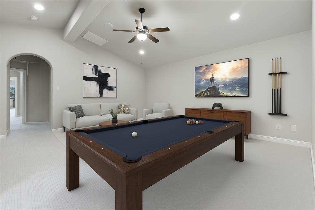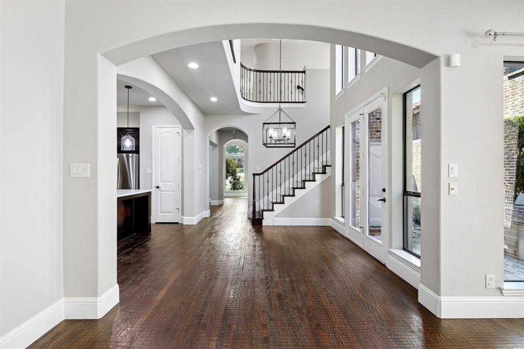 Welcome to 7040 Angelina, a 4-bedroom home capturing the best of Las Colinas living with brand NEW CARPET, a rare 3-car garage, and an incredible outdoor entertainment space with private hot tub! Near Lago De Claire, Lake Carolyn and Campion Trails, this Mediterranean-inspired residence offers a lifestyle where you can bike shaded paths in the morning, brunch nearby, and host sunset cocktails in your private courtyard—all in the same day. The timeless curb appeal sets the tone. Inside, a light-filled foyer with elegant hand-scraped hardwood floors and crisp walls leads to a guest suite or private office with tray ceiling and crown molding. Across the foyer, the formal dining room shines with a sparkling chandelier and rich wood floors, perfect for dinner parties. At the heart of the home, the chef’s kitchen boasts an expansive island, quartz countertops, custom cabinetry, stainless appliances, and modern backsplash. The kitchen flows into a sunny breakfast nook and open living room anchored by a stone fireplace. French doors and 2-story windows connect to the outdoor living areas, including a stone-clad kitchen with built-in grill and lush turf courtyard. Beyond the living room is a private study with backyard access. Upstairs, the primary suite offers a sitting area and Juliette balcony. The spa-like ensuite features dual granite vanities, soaking tub, glass shower, walk-in closet, and ensuite laundry. Secondary bedrooms feature vaulted ceilings and NEW carpet. The game room is perfect for play or fitness, while the media room with projector, screen, and Sony receiver delivers a turnkey movie experience. Additional highlights include built-in laundry cabinetry with utility sink, crown molding, recessed lighting, monitored security, and an elevated hot tub spa for starlit relaxation. 7040 Angelina isn’t just a house—it’s a lifestyle of connection, comfort, and luxury. Schedule your private showing today!