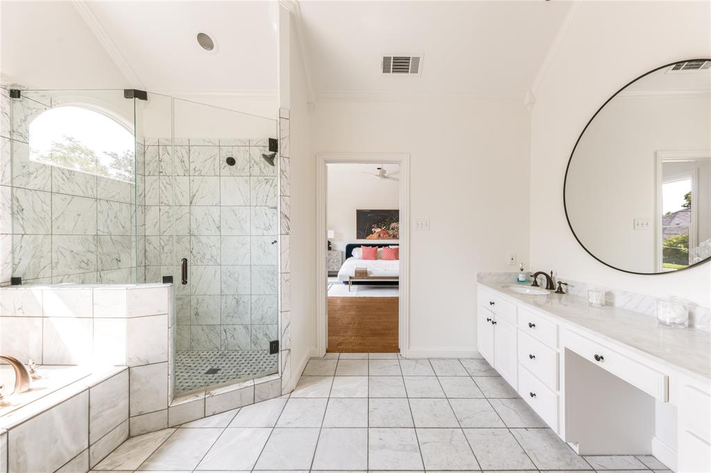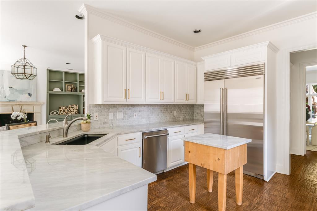Welcome to 3101 Cornell Avenue, a beautifully updated corner-lot home that offers 4 bedrooms, 3 full and 1 half baths, formal living and dining rooms, and a private study with French doors and built-ins. The newly renovated kitchen features marble countertops, double ovens, a SubZero refrigerator, gas cooktop, butler’s pantry, and a breakfast bar opening to the family room with views of the turfed backyard and putting green. All bedrooms are conveniently located upstairs with the laundry room, including a large primary suite with dual vanities, jetted tub, separate shower, and spacious walk-in closet. Recent upgrades include a new roof, Pella windows throughout, two new Lennox HVAC units, water heater, attic insulation with solar fan, and new landscaping in the front and side yards. The oversized three-car garage was rebuilt with full guest quarters offering a living space, kitchen, bedroom, and bath in 2022. Ideally located just one block from the Katy Trail, within walking distance to Armstrong Elementary and SMU, and close proximity to shops, parks, and restaurants, the location is unbeatable.