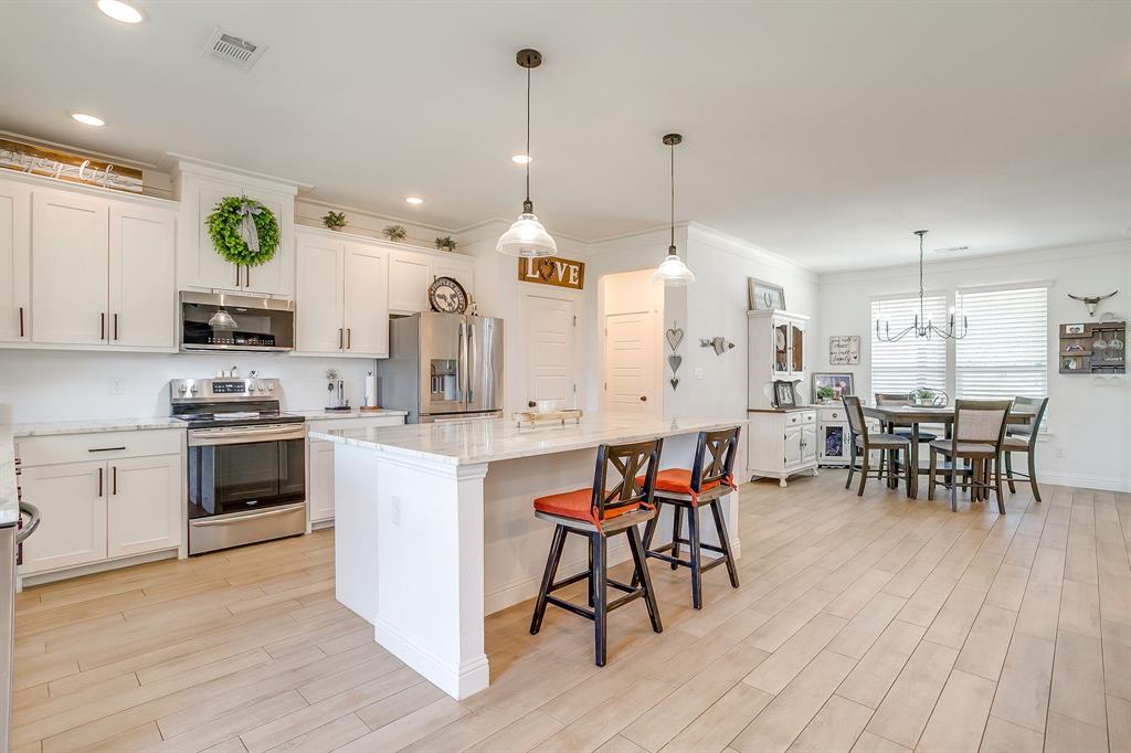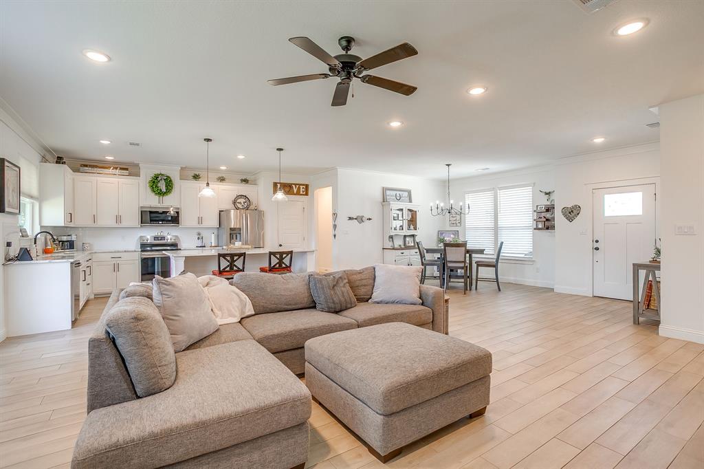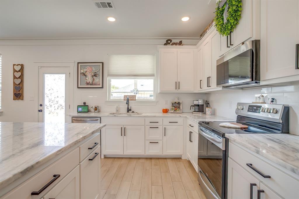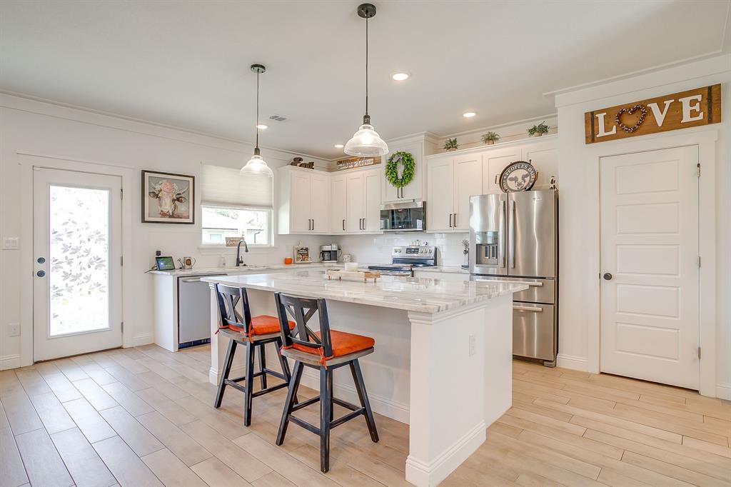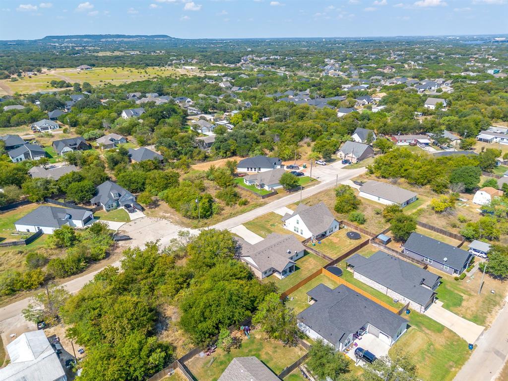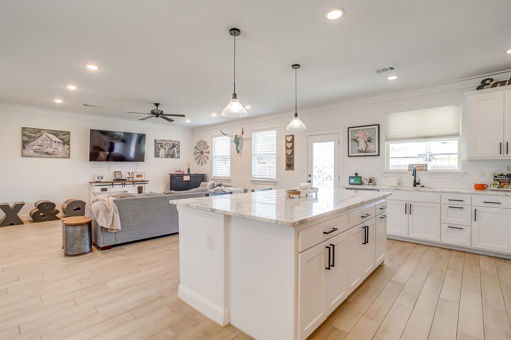 PRICED TO SELL NOW ! Access to Lake Granbury. This 3 bedroom, 2 bath home is located in Canyon Creek, which has a guard and access-controlled entry 24-7 and a daily courtesy patrol from 7 am to 12 pm. This single-story gem is light and bright and showcases stunning white & light gray granite counters in the kitchen, on the beautifully appointed kitchen island, both bathroom vanities and the utility sink in the laundry room. Spacious open concept connecting the living, dining and kitchen. The kitchen features stainless steel appliances, a large entertaining island for casual meals, abundant cabinetry and shelving, and a generous pantry. Easy-care, ceramic, wood-look flooring flows throughout the main spaces. The primary suite includes a roomy walk-in closet with extra shelves. East-facing backyard brings late afternoon and evening shade while relaxing and enjoying the covered patio with friends or family. The home has a sprinkler system and wood privacy fence. The attached two-car garage leads into the laundry room, which has a utility sink. Community amenities include two swimming pools, Lake Granbury access, two boat docks, a fishing pier, tennis and pickleball courts, a playground, and a rentable clubhouse. Minutes to Historic Granbury Square’s boutiques, dining and live theatre, with scenic Comanche Peak nearby.
