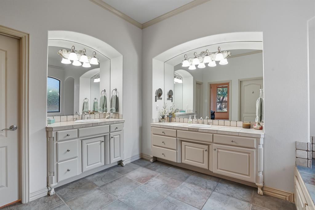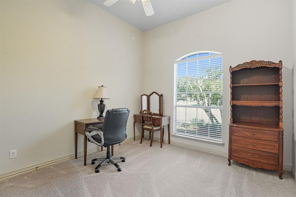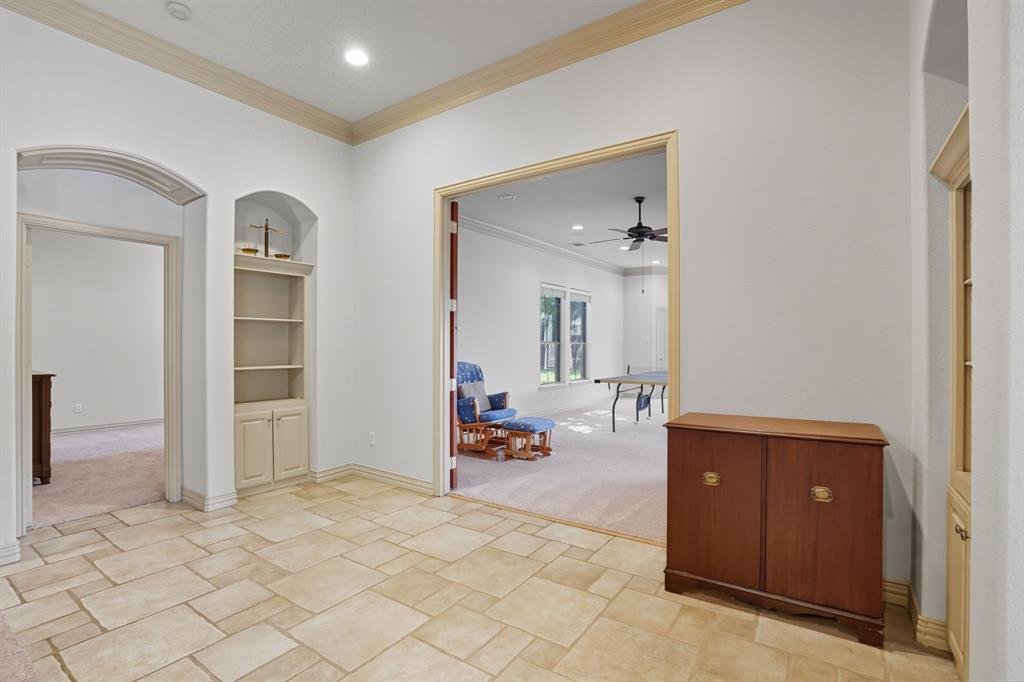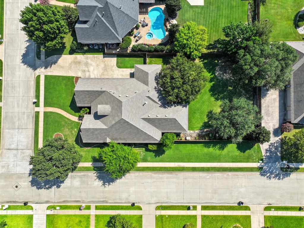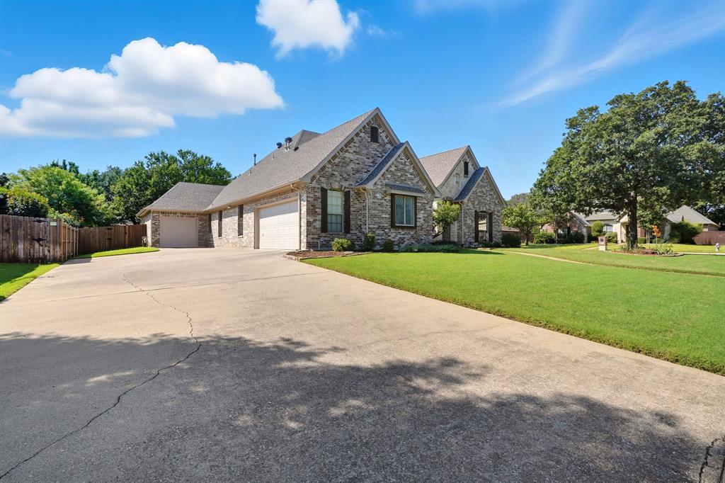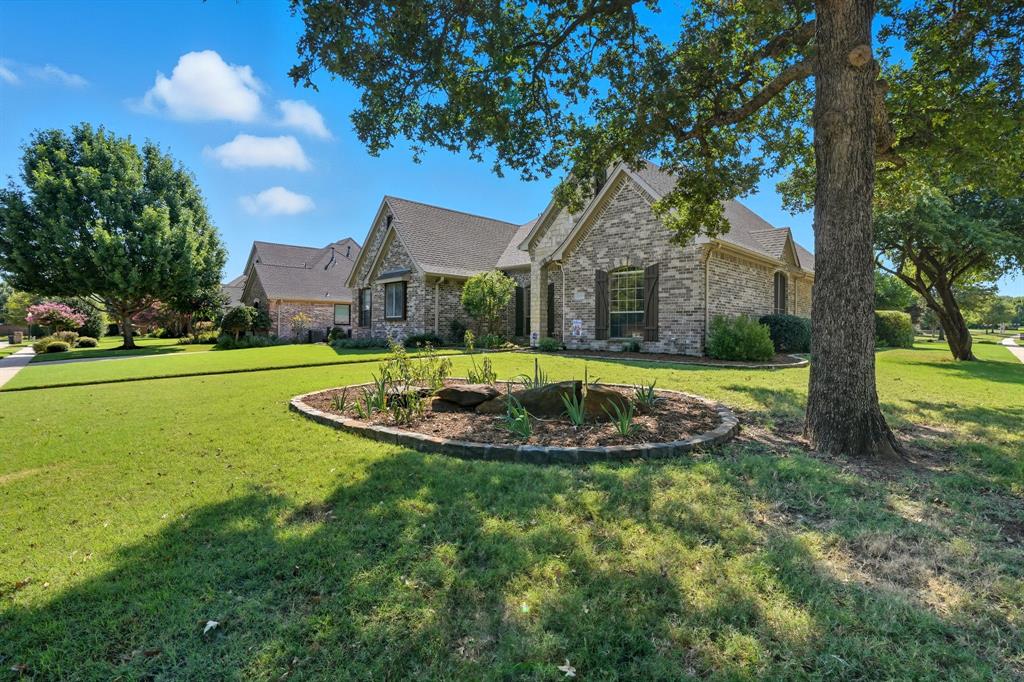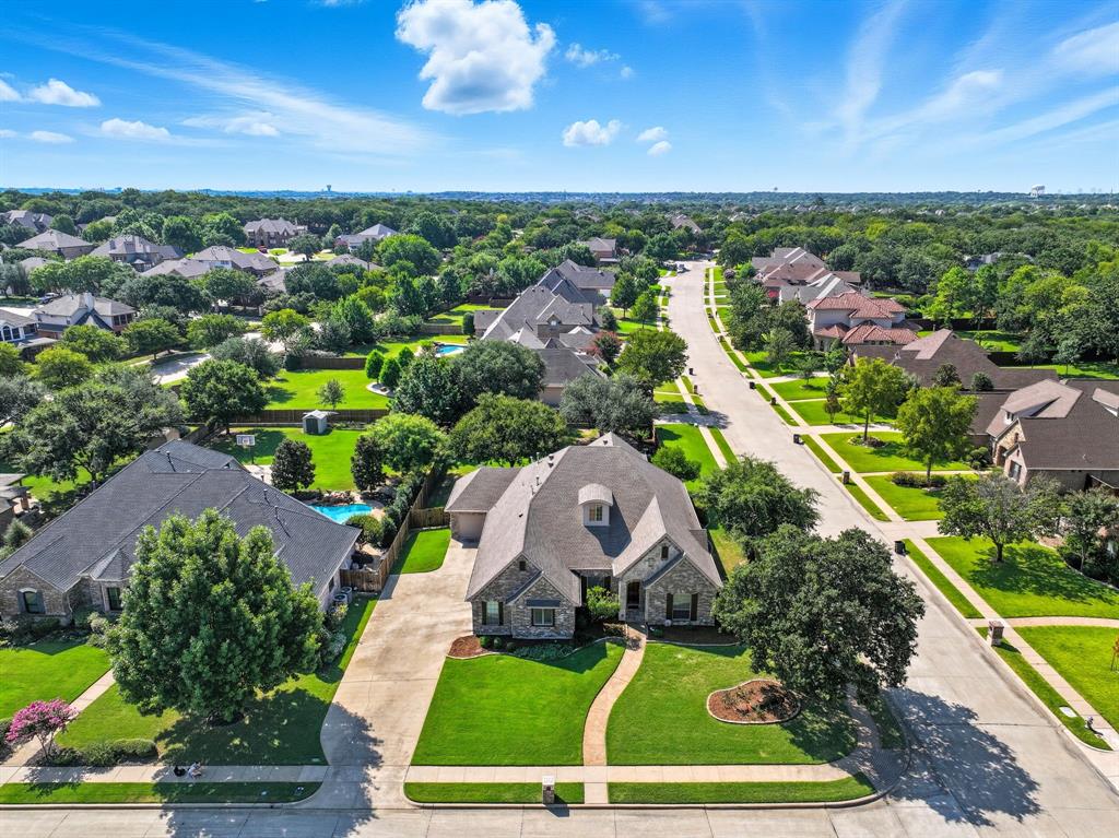 Perfectly located on a PREMIER HALF-ACRE CUL-DE-SAC lot in walking distance to the award-winning neighborhood elementary, this single-story home presents a stately stone and decorative brick facade overlooking meticulous landscape. The functional floor plan offers four bedrooms plus a dedicated study with French doors, three full bathrooms, a formal dining area, an oversized family room, an entertaining game room area with French doors, a gourmet kitchen with taupe granite, tumbled stone backsplash, 48-inch fluted cabinetry, a center island-breakfast bar, stainless steel appliances, double oven, a five-burner gas cooktop, and a traditional Butler's pantry; large utility area, and a three-car side-entry garage. Amenities include gracious wood-encased windows, fresh exterior paint, custom built-ins, extensive trim-molding, and professional landscape lights. The luxurious primary suite boasts a dedicated sitting area before bay windows, a large closet with custom built-ins, and spa-inspired bathroom. Relax and unwind under the large flagstone patio with cedar posts overlooking plenty of room for play. Key updates of the home include new carpet installed in 2025, refinished wood floors in 2025, most of the interior repainted in 2025. Feeding the award-winning Keller ISD, this home is in walking distance to the neighborhood, pool, park and heavily treed walking trails.