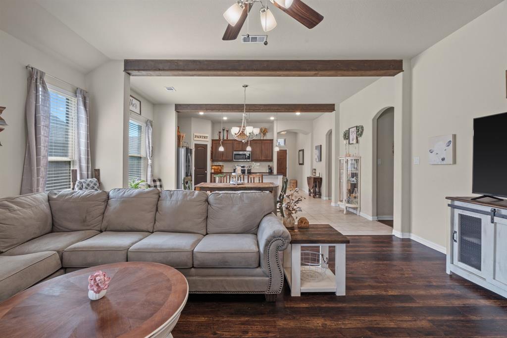 This stunning, 3-bedroom, 2-bathroom home with a dedicated office combines modern style with everyday comfort. Crafted by Riverside Homebuilders, it showcases an open floor plan with soaring tall ceilings and beautiful wood beam accents that make the living spaces feel inviting and spacious.