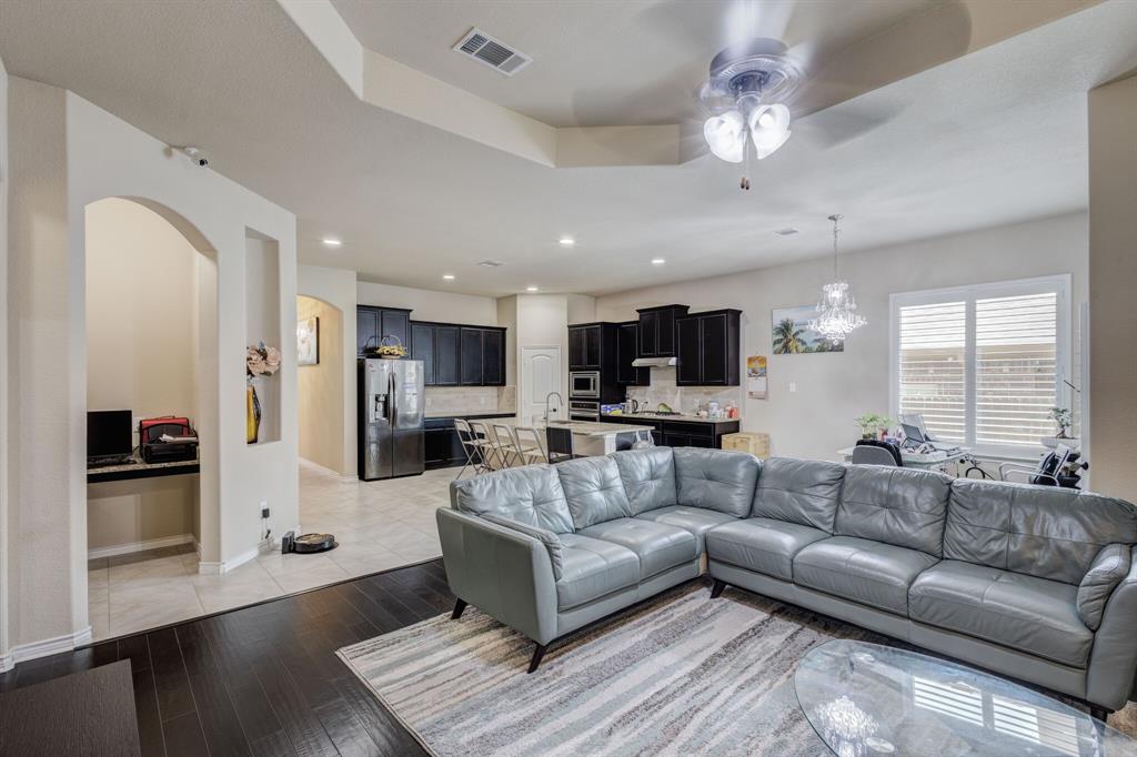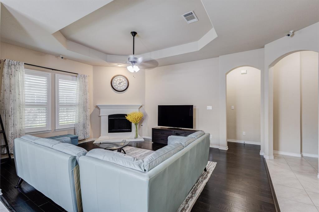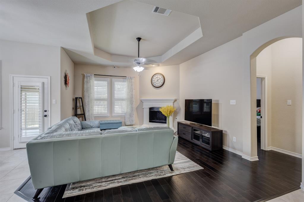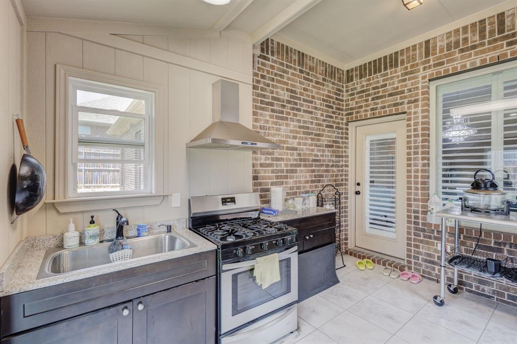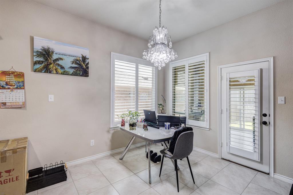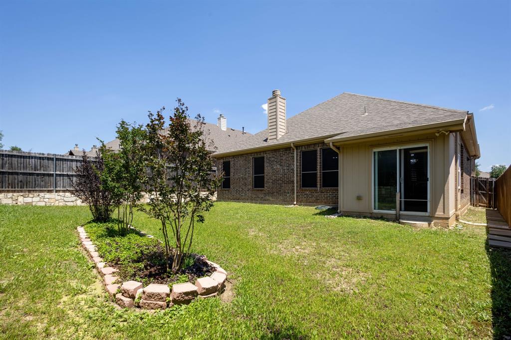 Lovely home in the Jackson Hills neighborhood of Sachse Texas. 3 bedrooms plus a study 2 bath 2 car garage and a second kitchen area! The open floor plan offers a classy chandelier at the foyer leading to the living room that also opens to the dining room and kitchen areas! Enjoy the beautiful custom flooring, a charming gas starter fireplace. Hosting gatherings will be fun with all the bell and whistle such as white cabinets, stainless steel appliances, granite countertops, stylish backsplash, modern lighting and kitchen island! Retreat to the private primary suite for a restful night's sleep and also enjoy the lovely master bath featuring separate shower and bath, vanity with dual sinks, roomy walk-in closet. With three additional secondary bedrooms, there's plenty of space for everyone here!! Passing through the enclosed patio equipped with a secondary and purposeful kitchen to get to the backyard, It opens to a vibrant green space--perfect for entertaining family and friends. This home offers the ideal blend of style, functionality, and convenience, all conveniently situated in Sachse with easy access to 190, highway 78 and a variety of shopping, entertainment, and dining options.