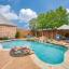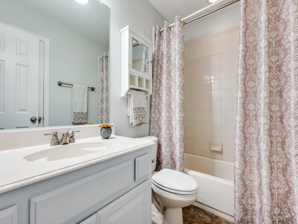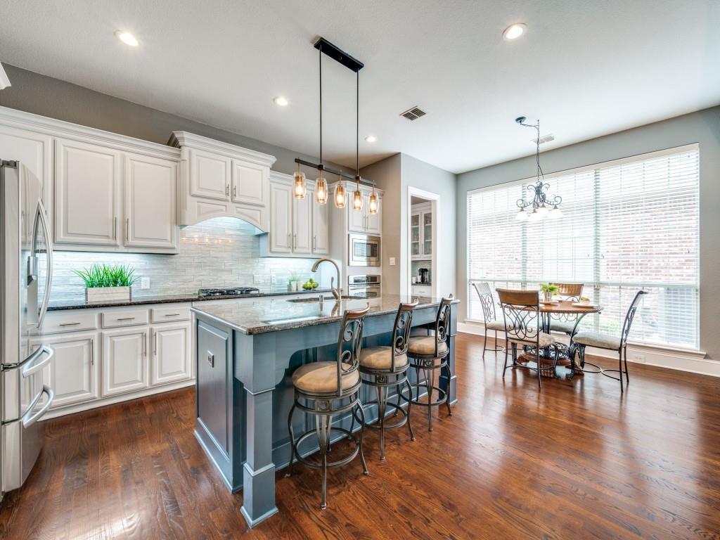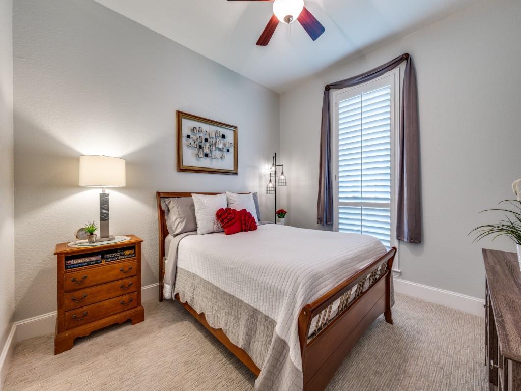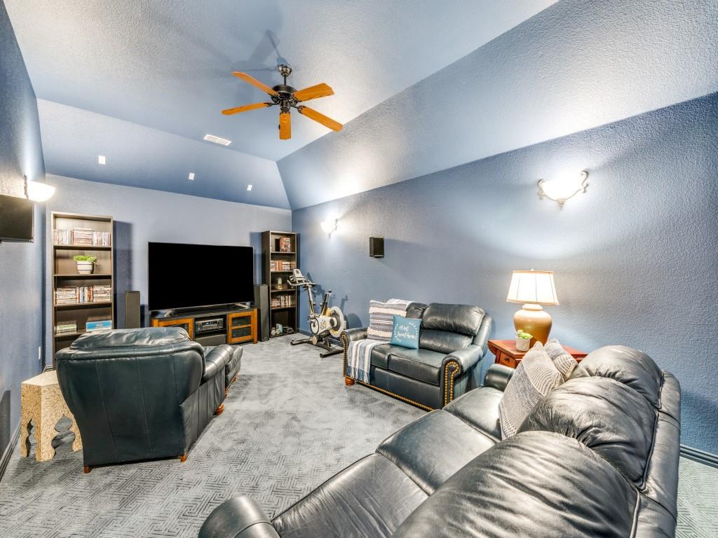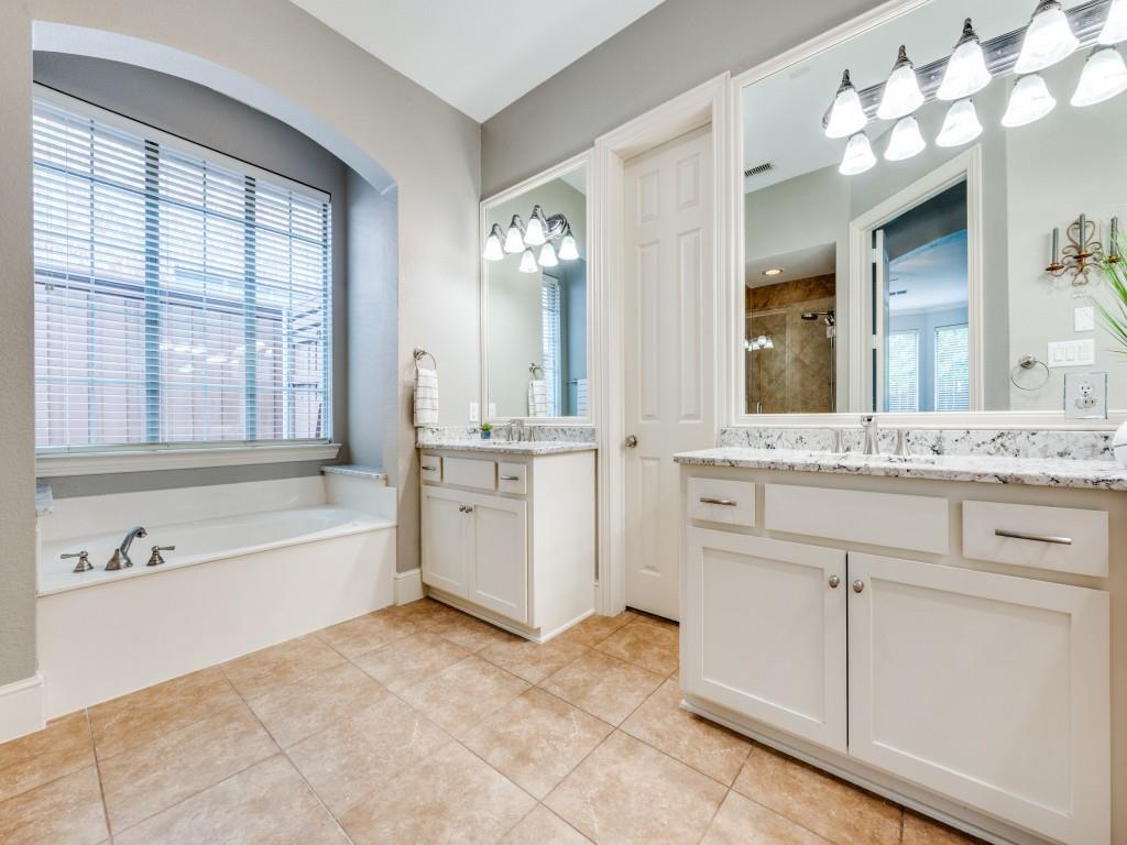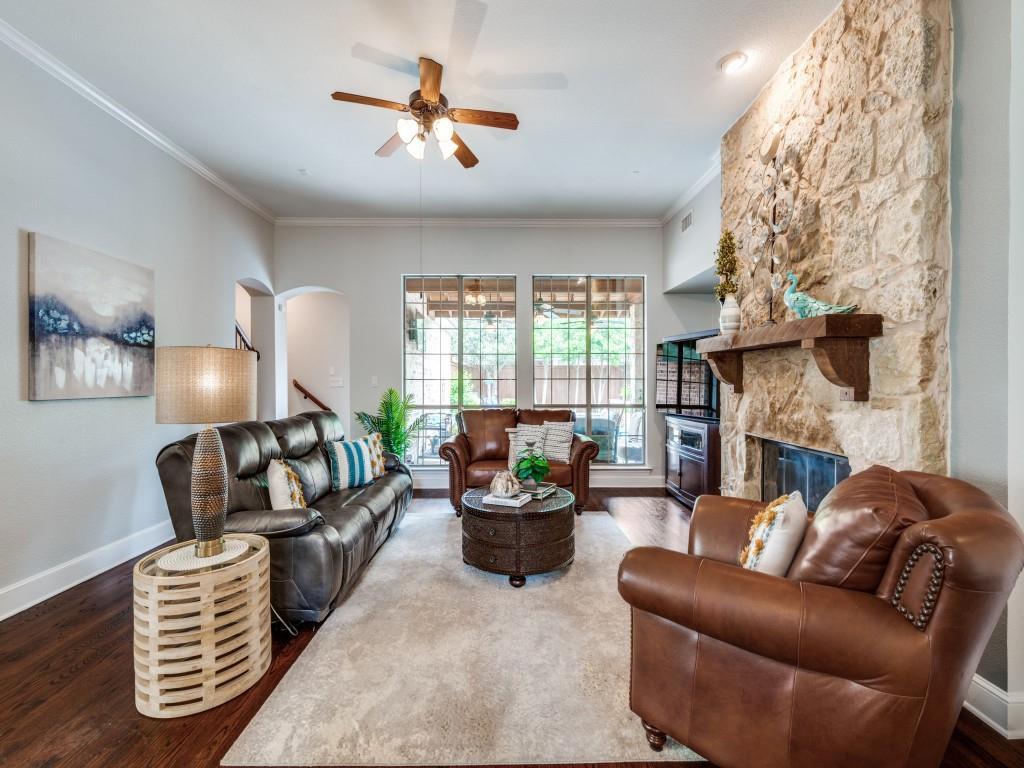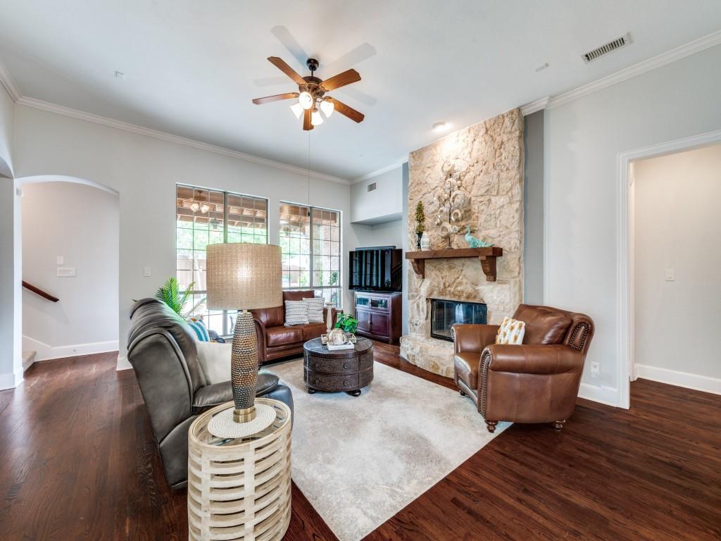 Beautifully appointed Highland Home built home located in popular Eldorado Fairways. Back yard oasis with Riverbend pool and a covered patio. Gorgeous front and back landscaping. Excellent floor plan with master suite, guest bedroom and office downstairs; 3 bedrooms, game room and media upstairs. Features include nail down hardwood floors, crown molding, plantation shutters, updated carpet and paint, double staircases, split master suite for privacy, oversized 2 car garage, covered patio, wet bar, 8 foot solid core doors, plus more. Luxurious master suite has a sitting area, separate vanities, granite counters, jetted tub, walk in closet plus more. Chef's kitchen has painted cabinets, an island, stainless steel appliances, gas cooking, granite countertops, a butler's pantry, and more. Expanded laundry room has a sink and built in cabinets. Convenient to 8 acre park, 2 playgrounds, a basketball court, and community pool. Easy access to hike and bike trail to Lake Lewisville area. Close to the North Dallas Tollway, PGA Headquarters, The Trails Golf Course, shops and restaurants. Wakeland High School zone. This home is meticulously maintained.