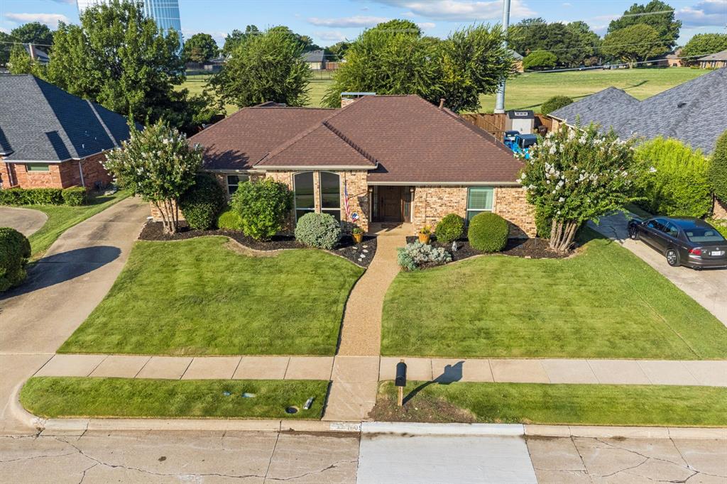Absolutely fabulous single story home in the heart of Plano in the peaceful Highlands North neighborhood. This property sits central to all of the fun shopping and dining nearby, the trails that cut north to the Carpenter Park Recreation Center, and you're just minutes to Baylor Scott and White cardiac hospital. Gorgeous curb appeal thanks to the custom brick exterior, the stunning solid wood front door, and the most luxurious zoysia lawn ever. Many improvements were performed circa 2016-2019 including windows, the remodeled kitchen, roof and gutters, and the HVAC. Recent upgrades include the zoysia lawn (yeah, we're talking about it again!), Rachio smart watering system, board on board privacy fence, self-cleaning water heater, the new electric gate on the driveway, custom Elfa closets in the primary, insulated garage door and motor, and y'all - even the light switches have been upgraded. The floor plan is a dream with a light-washed formal dining space, two beautiful living areas, a big kitchen and secondary bedrooms split from the primary. The paint is fresh, the accent colors throughout are tasteful, and the elevated light fixtures in the home brighten every room. Beamed ceilings, a wood burning fireplace, built ins and wall molding details lend character and charm. And when you're ready for the outdoors, enjoy your generously sized and perfectly private backyard with a rear-facing garage, fantastic courtyard patio, and a gate that leads to the greenbelt and trails. Welcome home!