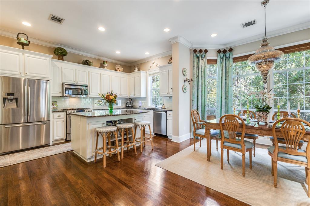 The first floor offers a generous bedrooms suite with a walk-in closet just off the foyer. Upstairs, the main level has a seamless flow between the kitchen, dining, and living areas. Rich hardwood floors, custom built-ins, a cozy fireplace, and floor-to-ceiling windows invite natural light filtered through the mature trees.