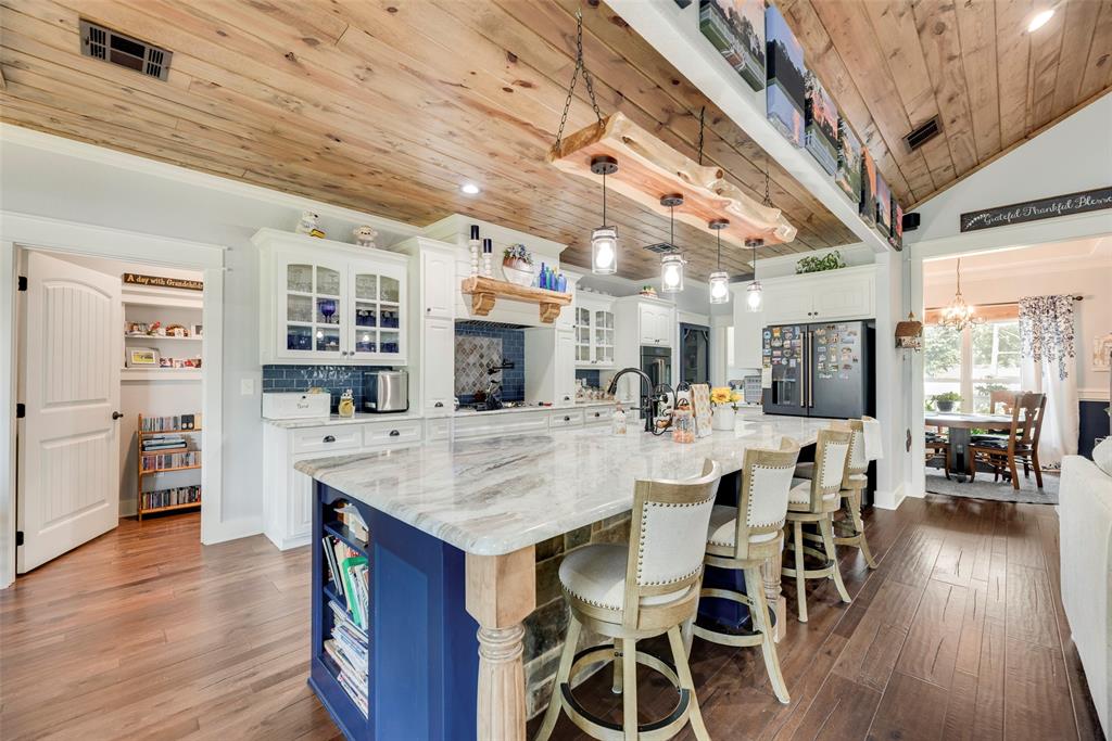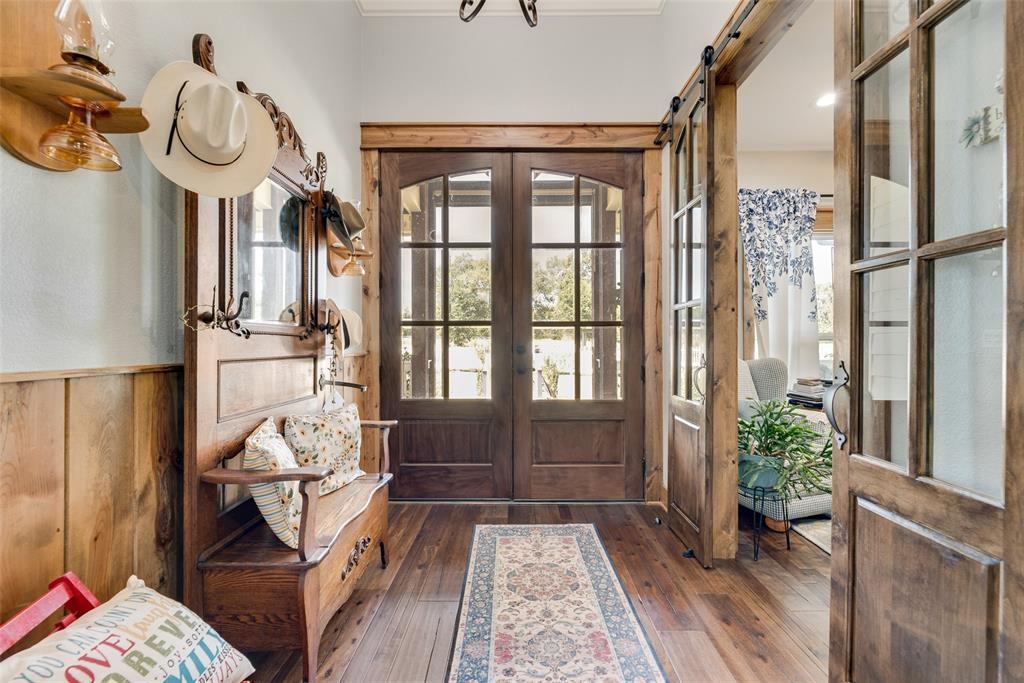 Rockin B Farm 35 miles to Dallas sits on luxurious 77 acres offering 2 Modern Farm Homes built in 2020 of serene country living. This stunning gated property offers rolling hills, peaceful nature and beautiful sunsets, 4 ponds, lush pastures for livestock grazing with Metal Barn and Shed-Shop on concrete slab. Cross over bridge to enter first home of 2,439 sf with 3 bedrooms 2 baths, Wrap around porches, open floor plan for entertaining, high end appliances, soft close drawers, screen door pantry, pot fillers and large island with beautiful granite that flows through out with wood floors overlook family rooms. Wood ceiling and mantles in family room and patio hand picked tree from Oklahoma. Secluded Master suite with outside entry doors. Huge laundry room with cabinets, sink and MUD area to outside. Second home of 3,538 sf has 4 bedrooms 3.5 baths with wrap around porch and sitting area on front porch. Enter through Iron glass doors to stained concrete floors, open floor plan with gorgeous granite throughout home. Beautiful wood cabinets and massive island in kitchen. Master suite has door that leads to patio. Master bath adjoins laundry room with concrete counters, cabinets and storage closet. Above garage with staircase leads to Man Cave-Bonus room with own bath. Large family room with Stone fireplace leads through French doors to outside entertaining with massive patio and pool. Gorgeous flowers gardens with walkways to pond. So much detail see Feature Sheet in Transaction Desk. Approval letter before showing 1 day notice but may be able to work around 1 day. Information deemed reliable. but Buyers & Buyers Agent are responsible for verifying all information.