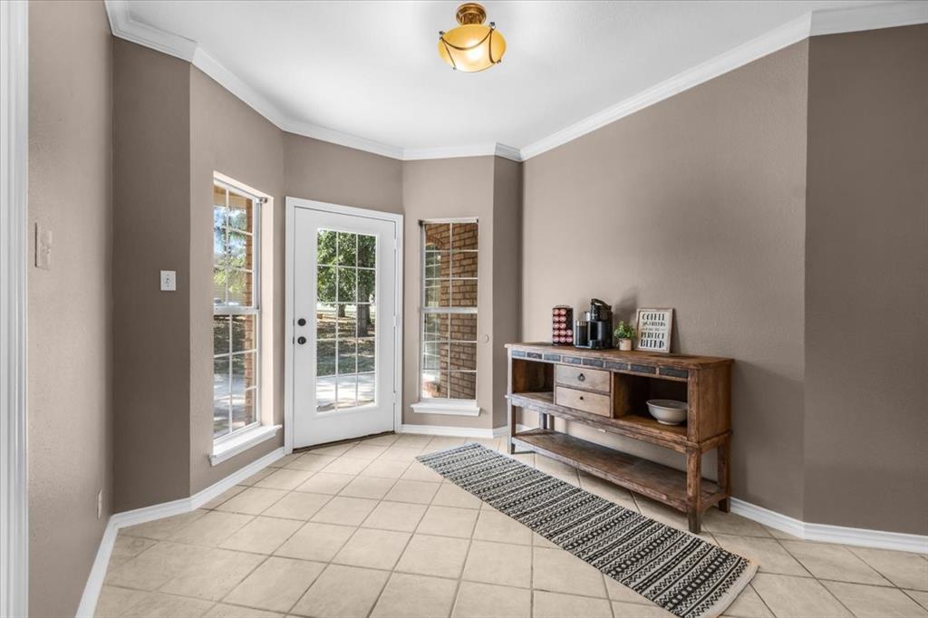 Welcome to this one-owner, custom-built home set on a full acre and shaded by beautiful oak and cedar trees. The thoughtful split floorplan places the private primary suite away from the secondary bedrooms, while an inviting eat-in kitchen with charming bay windows and a generous formal dining room with classic wainscoting set the stage for memorable gatherings. A bright, spacious flex room adds versatility—ideal for working from home, a music or craft studio, or a second living area. Recent updates add to the charm: fresh interior paint, new luxury vinyl plank flooring in multiple rooms, several new interior doors, wallpaper removed in the primary bath, plus a new vanity and a sleek freestanding tub. Outside, the backyard showstopper is a 6-foot-deep gunite pool with waterfall and rock accents—perfect for relaxing or entertaining. A private water well serves the full irrigation system and is used to fill the pool, adding convenience and potential savings. As an added bonus, a new portable generator (already wired to the home) conveys, offering extra peace of mind. Enjoy the best of lake-area living: you’re a short drive to Lake Lewisville for boating, paddleboarding, fishing, and sunset strolls. Nearby favorites include Little Elm Park & Beach, Cottonwood Creek Marina, and dining, events, and year-round fun at The Lakefront® District (home to the indoor waterpark, The Cove). With space, serenity, and updates in all the right places, this well-loved custom home checks every box—inside and out. Some photos have been virtually staged.