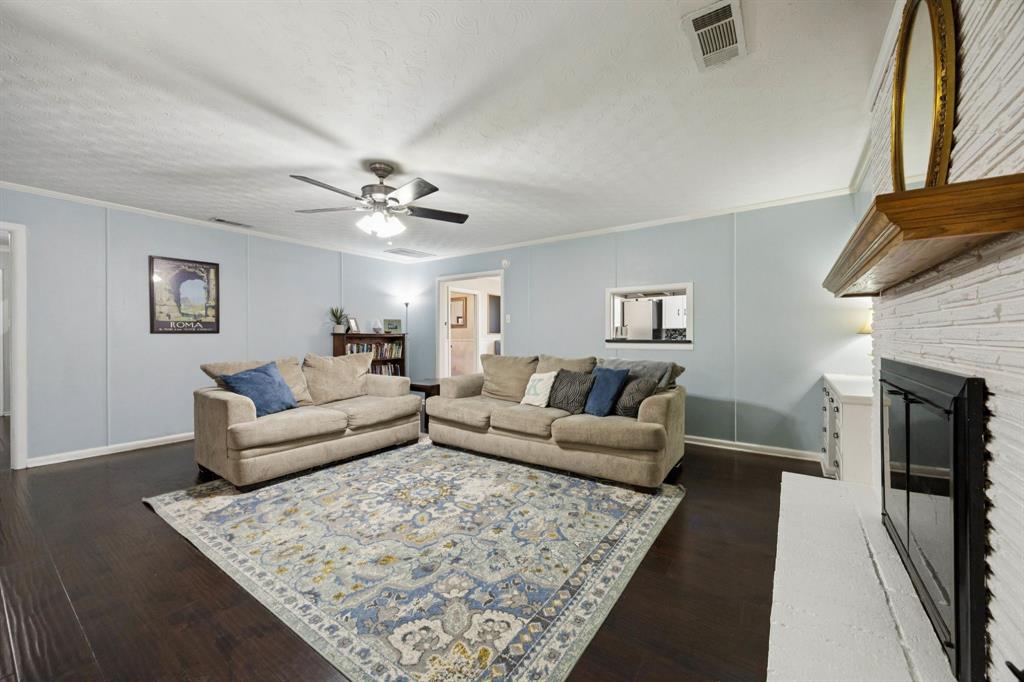 Charming curb appeal welcomes you to this well-maintained home in the desirable English Estates subdivision. Step inside to a spacious formal living and dining area highlighted by a large picture window that fills the space with natural light. The kitchen offers generous cabinet storage, granite countertops, and flows seamlessly into the main living area, where engineered hardwood floors run throughout. The cozy family room features a wood-burning fireplace, built-in desk, and direct access to a versatile bonus room. Whether you need space for a home office, crafts, or a workout area, this room adapts to your lifestyle and opens to the backyard for added convenience. Outside, you’ll find a private yard with plenty of room for outdoor enjoyment. This home combines comfort, functionality, and classic style in a location close to schools, shopping, and dining—making it a wonderful place to call home.