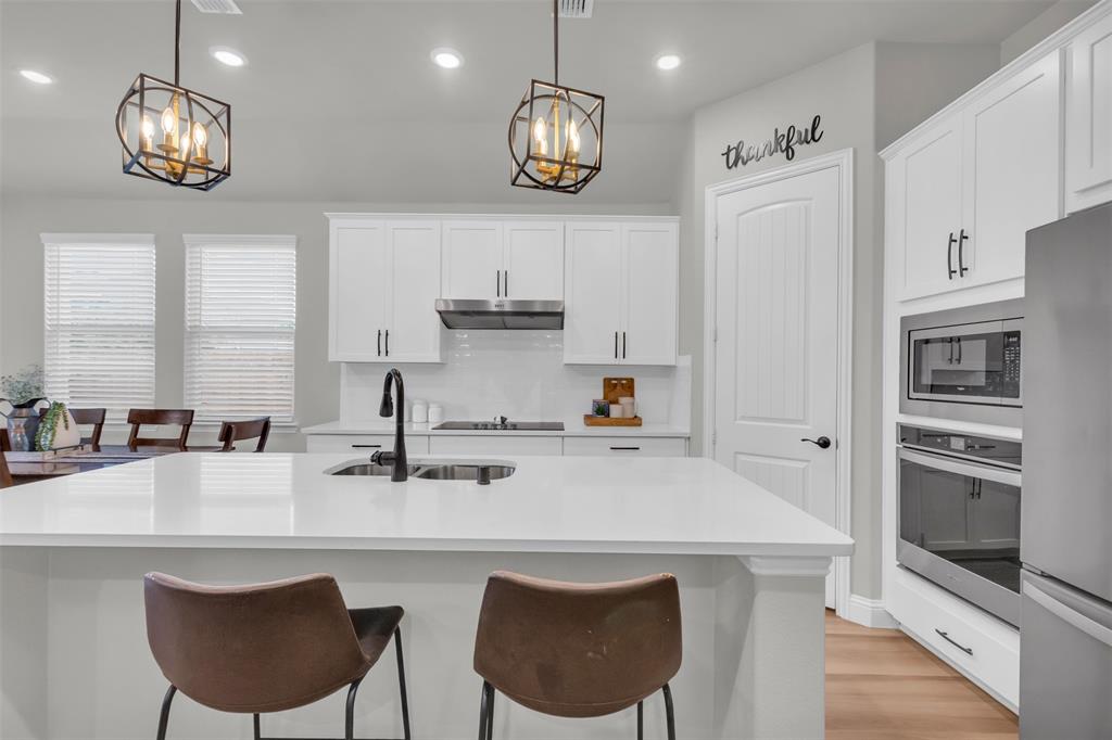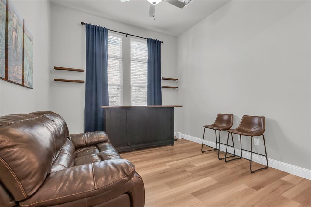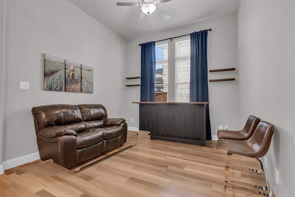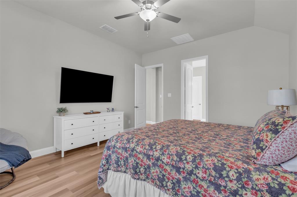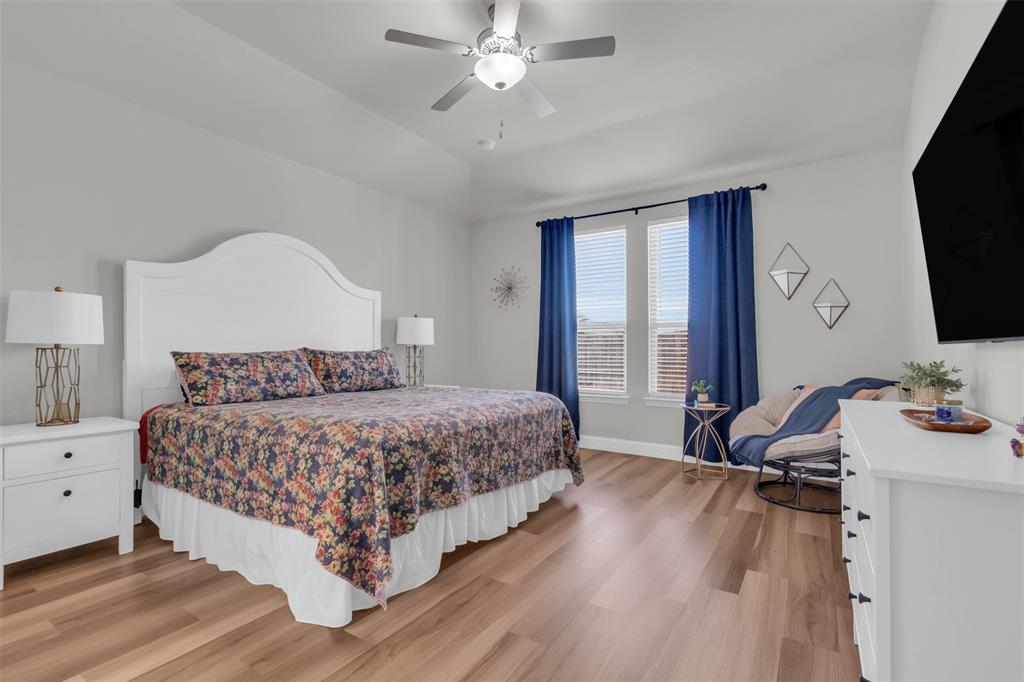 Welcome to your dream home in The Enclave at Oak Grove, Little Elm, built in 2021 and offering 2,311 sq ft of modern living space. Situated on an oversized corner lot, this 3-bedroom, 2-bathroom residence features a grand, high vaulted ceiling that creates an open and airy atmosphere. The open floor plan naturally leads you through the main living areas, including a dedicated study perfect for a home office, a formal dining area, and a cozy living room centered around a fireplace, all of which are designed to feel welcoming. The generously sized kitchen is a chef's delight, and the large laundry room provides ample space for household tasks. The energy-efficient home is designed for seamless indoor-outdoor living, featuring a covered porch that offers a perfect spot for relaxation. Located in a prime area, you'll be just moments away from local schools, a variety of dining options, and entertainment venues. This home is a must-see for anyone seeking style, comfort, and convenience.