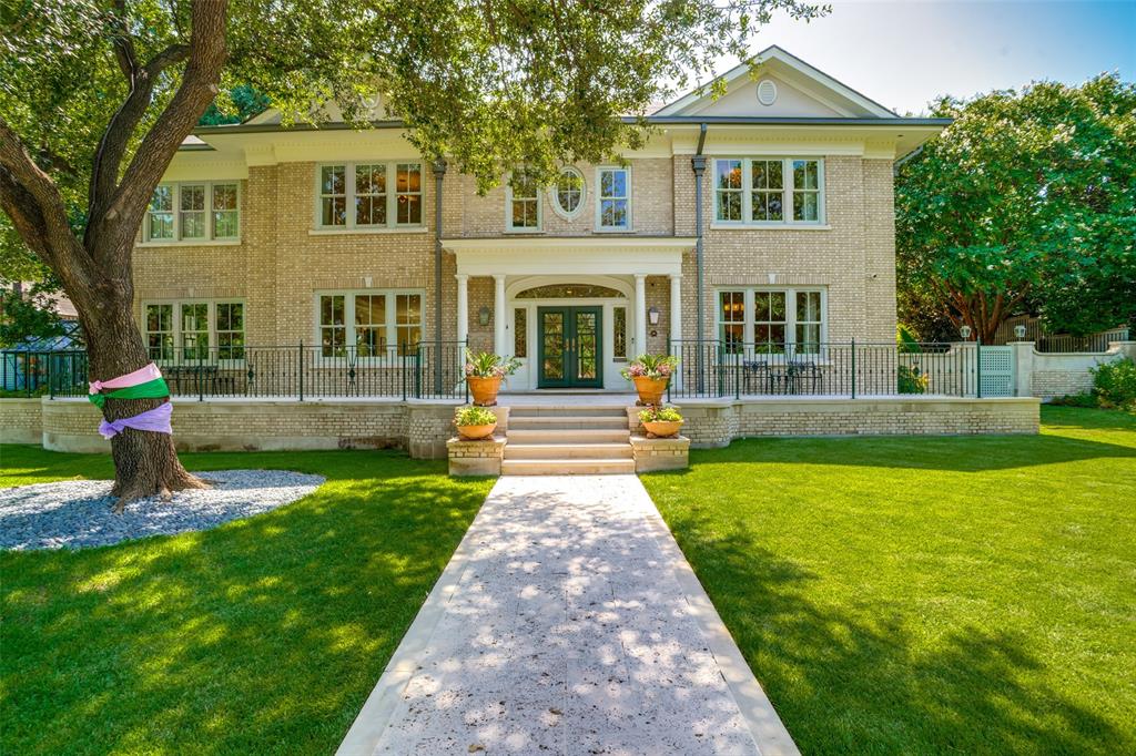 Perched on a coveted Lakeside lot overlooking Turtle Creek, this magnificent residence has been a timeless statement of style for over a century. Meticulously taken to the studs and rebuilt from 2020-2022, the home seamlessly blends historic elegance with modern living. The gracious entrance foyer opens to formal living and dining rooms adorned with white oak floors and intricate plaster details, while a private office overlooks the serene backyard and greenhouse. Offering five spacious en suite bedrooms, a versatile third-floor flex room, and separate guest quarters with a full bath over a three-car garage, this residence provides ample room for both family and guests. Outdoor living is equally enchanting with a side courtyard featuring a fountain, plus a separate lush backyard and greenhouse.