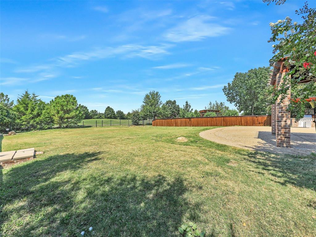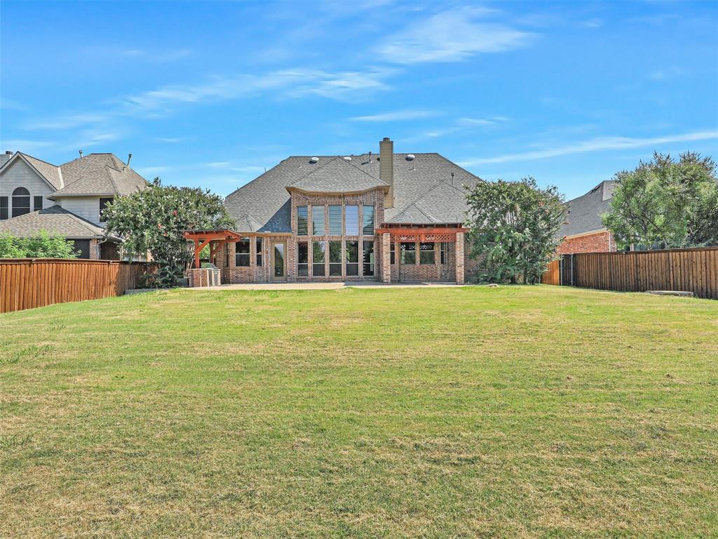 GOLF COURSE LOT! Step into a grand foyer with sweeping views of the 5th hole, setting the tone for this stunning Drees-built residence. Located in the highly sought-after Coyote Ridge subdivision, residents enjoy access to top-tier amenities including a community pool, clubhouse, brand-new pickleball courts, and tennis court designed with flexibility and comfort in mind, this spacious home offers: 5 Bedrooms with a versatile floor plan, 4 Full Bathrooms, 3 Expansive Living Areas, Media Room for movie nights and entertainment with a spacious 3-Car Garage with ample storage. The primary suite is a serene retreat featuring a bay window with a cozy reading nook and tranquil backyard views. The Texas-sized backyard is an entertainer’s dream, complete with an outdoor kitchen, extra living space, and plenty of room for gatherings. The gourmet kitchen boasts endless granite countertops, an oversized island, stainless steel appliances, and a large walk-in pantry—perfect for both everyday meals and hosting guests. Custom built-ins and a dramatic floor-to-ceiling family room add character and warmth throughout. Additional highlights include a spacious laundry room with sink, and abundant natural light from large windows that enhance the open-concept layout. Ideally situated near Grandscape, HWY 121, and DNT, with DFW Airport just 15 miles away, this home offers unbeatable convenience for commuters and travelers alike. Nearby parks, restaurants, shopping, and top-rated schools make this location truly exceptional. Move-in ready and full of charm—don’t miss your chance to own this beautiful home!