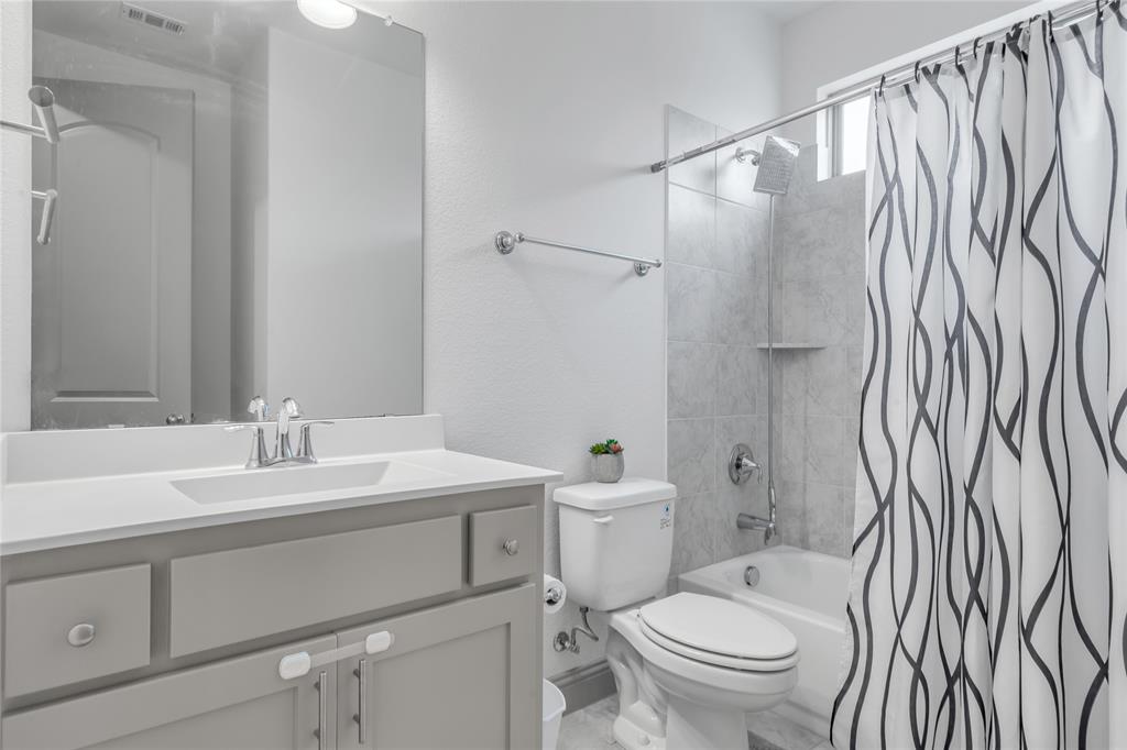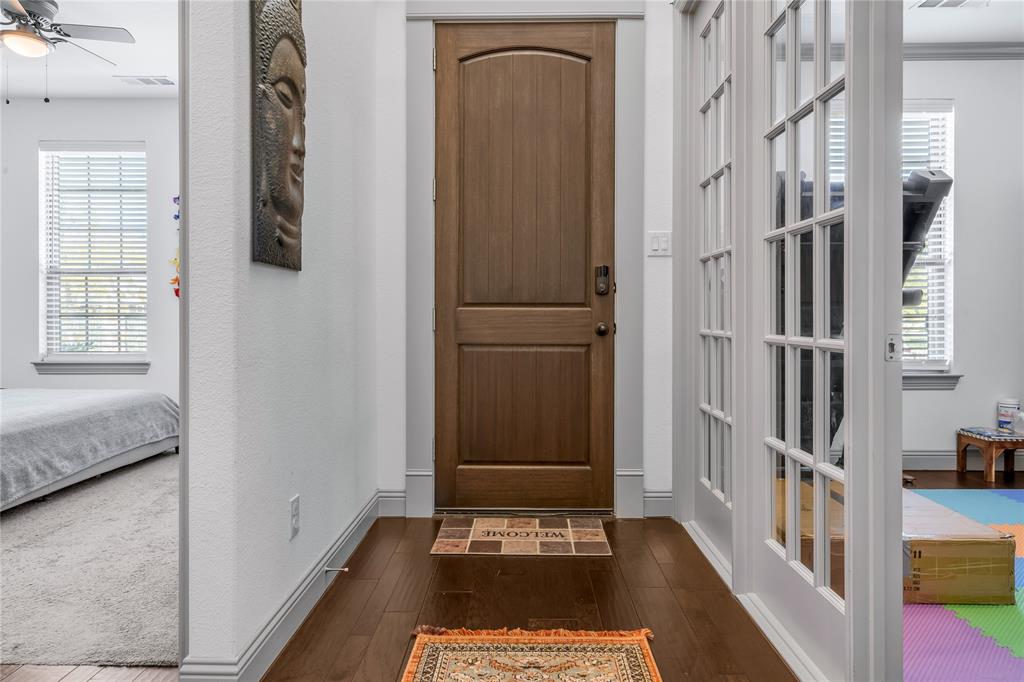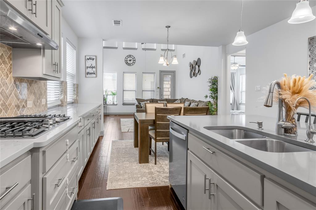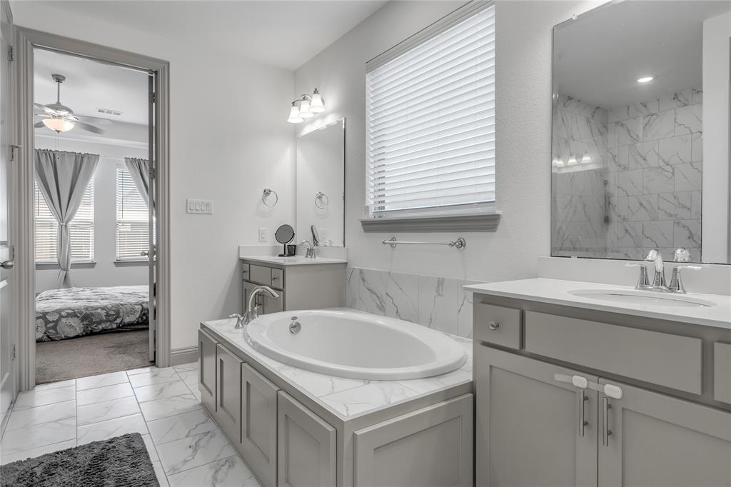 Welcome to this gorgeous 4-bedroom, 3-bathroom home offering right under 3,000 square feet of thoughtfully designed living space, in the highly sought-after Viridian community. The open floorplan highlights a modern kitchen with quartz countertops, a spacious island, and seamless flow into the dining and living areas—perfect for both entertaining and everyday comfort. This home features two primary bedrooms, an office for remote work or study, and an upstairs loft that can be used as a game room or additional living space. Stylish finishes include hardwood flooring paired with plush carpet in select areas. Enjoy a fully fenced backyard with low-maintenance artificial turfed grass and a covered patio, ideal for year-round gatherings. Home also comes equipped with motorized blinds with remote control, and an iron door for extra security! Located in Viridian, residents enjoy access to top-tier amenities, lakes, trails, and parks, with premier shopping, dining, and entertainment just minutes away. A perfect blend of comfort, style, and convenience in one of Arlington's most desirable communities. Don't miss out on the chance to secure your dream home, schedule a viewing today!