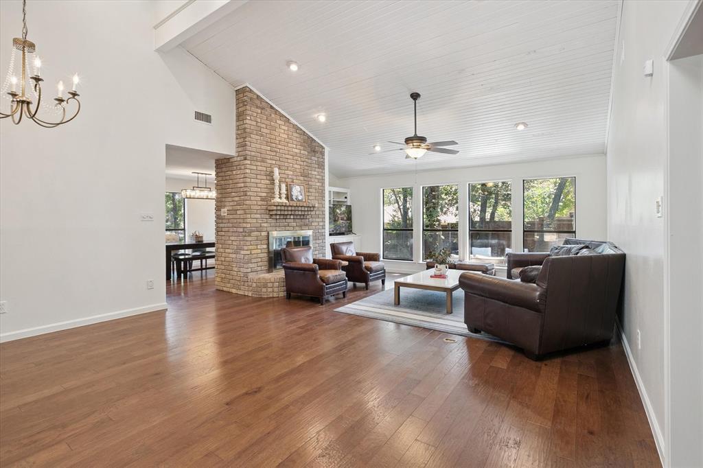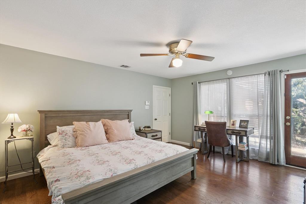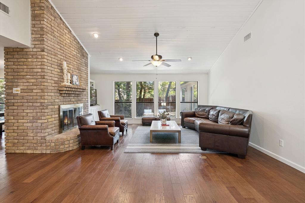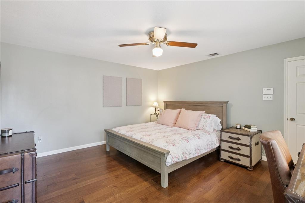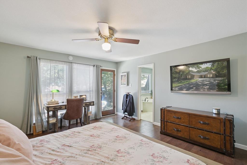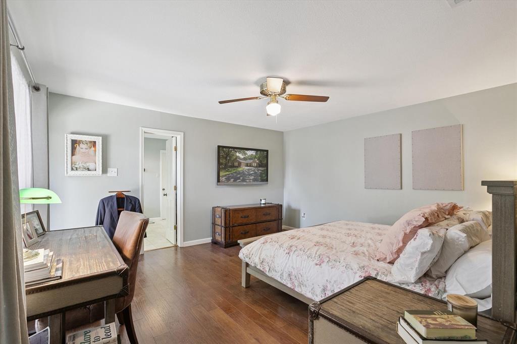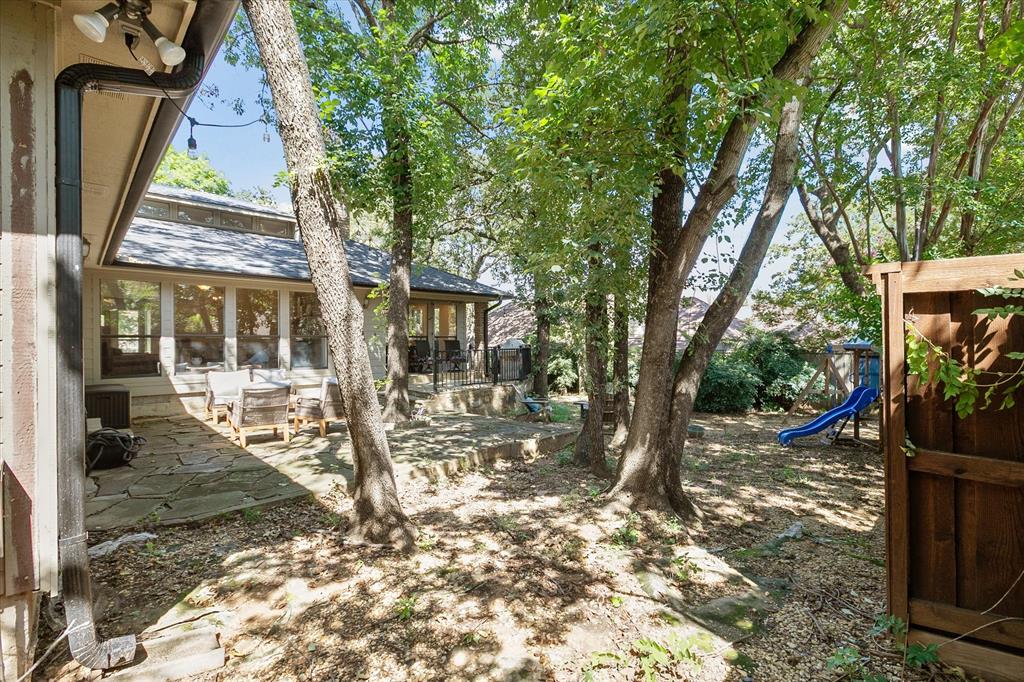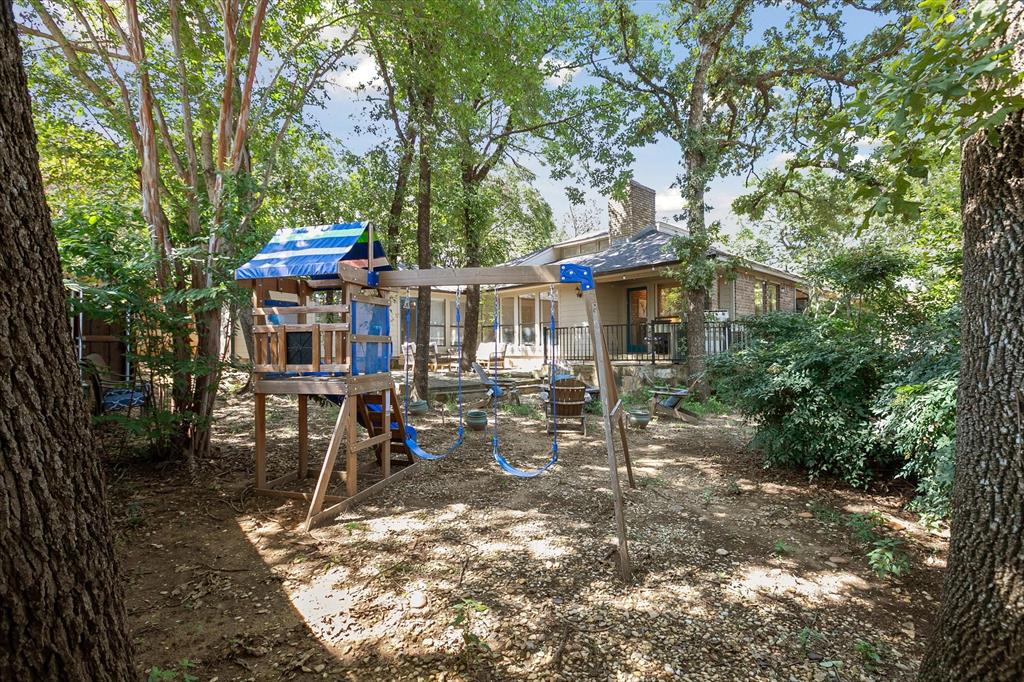 Paradise in Trophy Club! DFW's original planned development. Wooded lot, cul-de-sac cove, beautifully maintained. Open spaces, natural light, quality wood laminate flooring. Northwest ISD. Parks, walking trails, golf course community. Between Dallas & Ft Worth. 14 minutes to DFW AIRPORT. 3 bedrooms, fireplace, backyard patio for outdoor living. Oversized owner's suite with backyard access for privacy. Jack & Jill style bathroom connects both bedrooms. Front bedroom can easily double as a home office. Cathedral style wooded ceiling, fresh paint. Oversized 2-car garage. The home is situated on a large lot, with a deck and mature trees out back. Ideally located just around the corner from Hutchins BBQ, HG Supply Co, Trophy Club Country Club nearby, Harmony Park with pickleball courts, ball fields, playground, and more! Come see why people love the Town of Trophy Club!