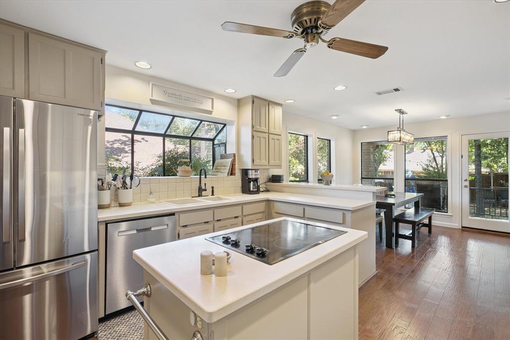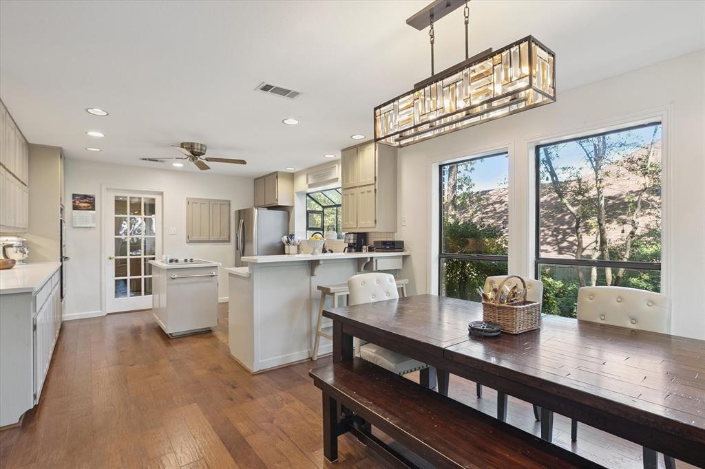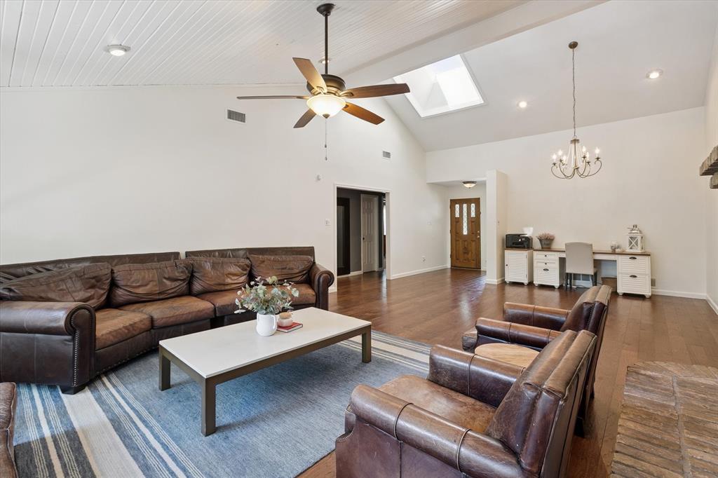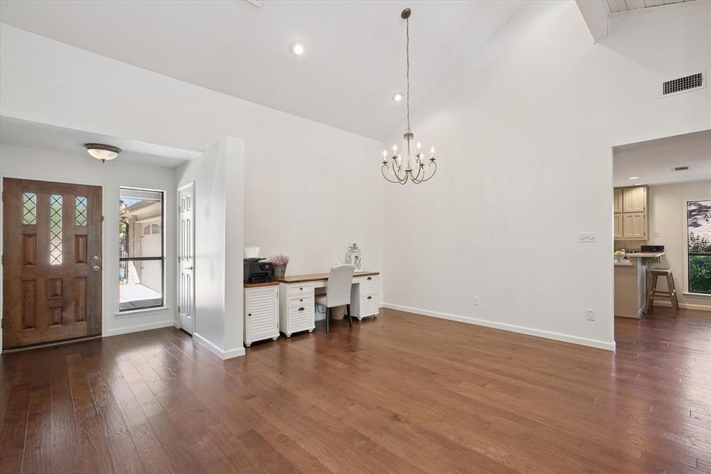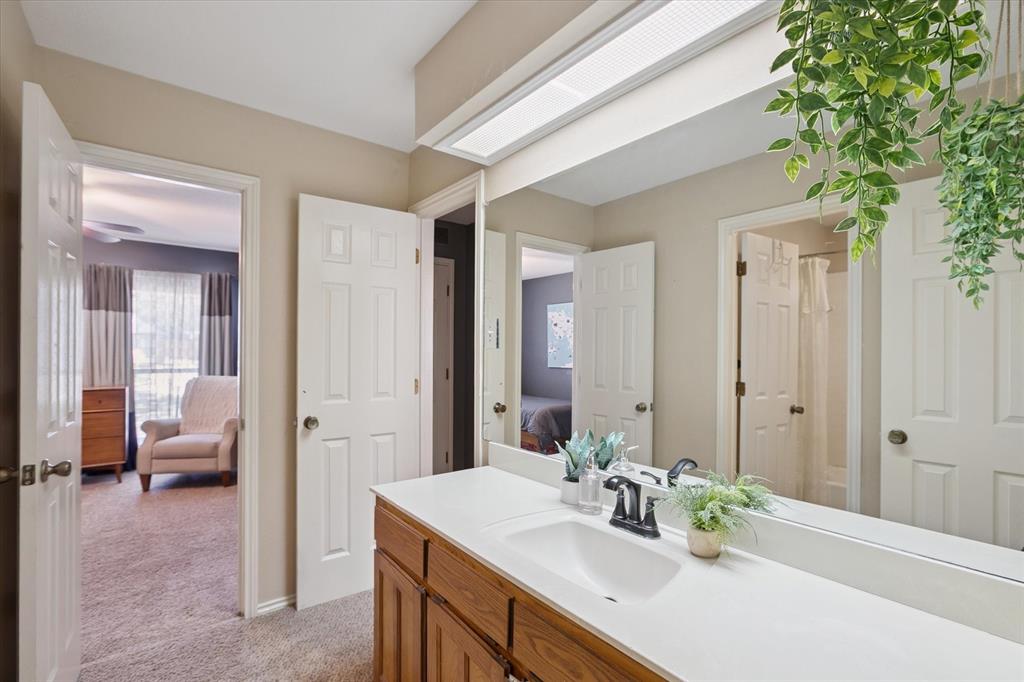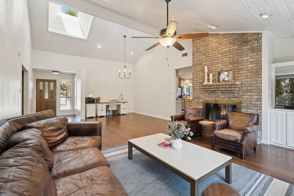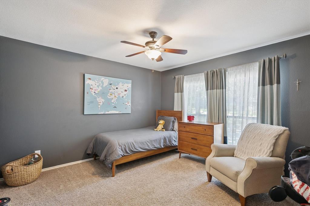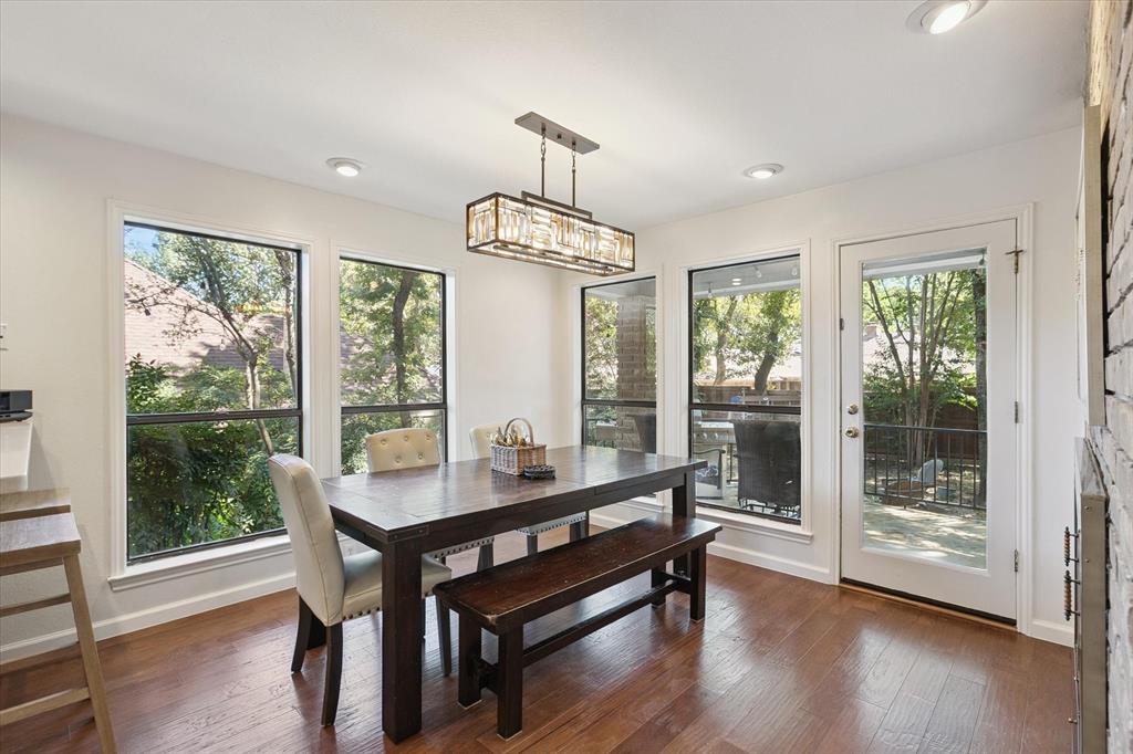 Paradise in Trophy Club! DFW's original planned development. Wooded lot, cul-de-sac cove, beautifully maintained. Open spaces, natural light, quality wood laminate flooring. Northwest ISD. Parks, walking trails, golf course community. Between Dallas & Ft Worth. 14 minutes to DFW AIRPORT. 3 bedrooms, fireplace, backyard patio for outdoor living. Oversized owner's suite with backyard access for privacy. Jack & Jill style bathroom connects both bedrooms. Front bedroom can easily double as a home office. Cathedral style wooded ceiling, fresh paint. Oversized 2-car garage. The home is situated on a large lot, with a deck and mature trees out back. Ideally located just around the corner from Hutchins BBQ, HG Supply Co, Trophy Club Country Club nearby, Harmony Park with pickleball courts, ball fields, playground, and more! Come see why people love the Town of Trophy Club!