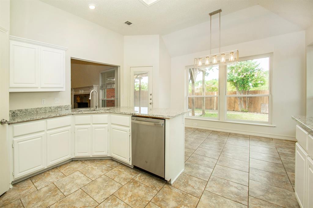 Adorable single story home with great elevation, located in Northwest Carrollton. Newly renovated. Fresh paint. New countertops. New appliances. Nice house with great open floor plan. Vaulted ceiling. Full of natural lights! Hardwood floor, ceramic tiles in entrance and kitchen area. Formal dinning or study with French door. Kitchen has lots of cabinet and big counter space, open to breakfast and living area. Granite countertops. Covered patio with concrete floor. Trees in backyard. Nearby are Carrollton's Blue Trail and Branch Hollow Park. Easy access to highway, close to shopping and restaurants. Move In Ready!