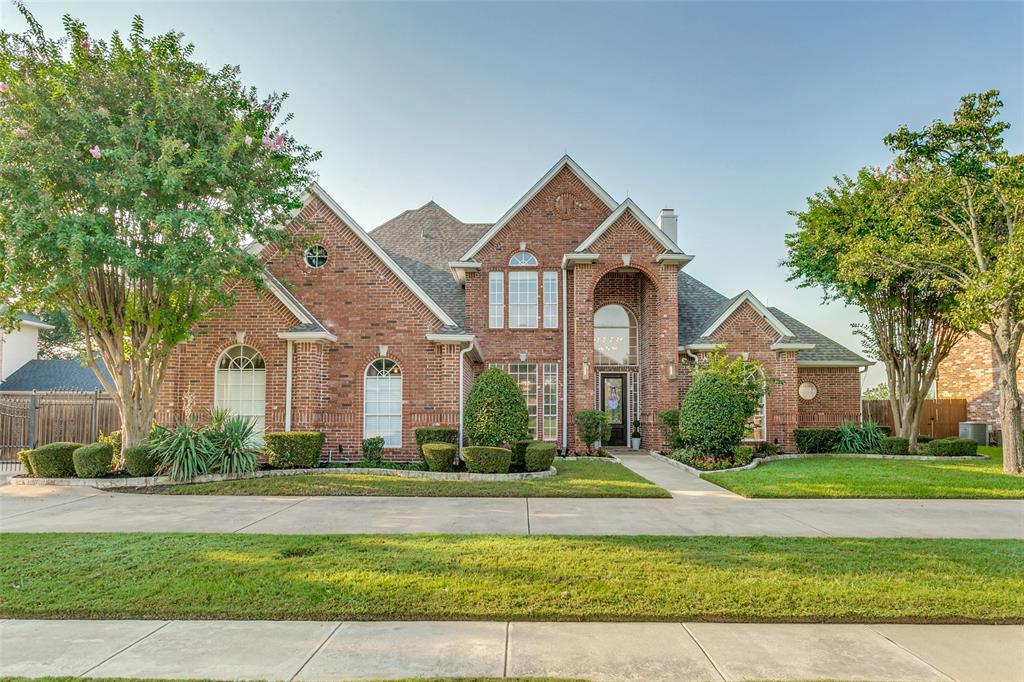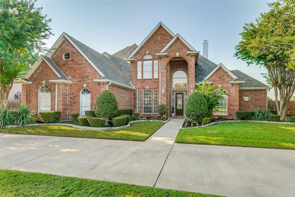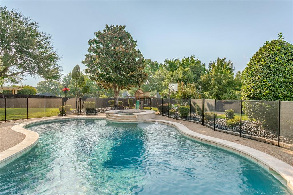 Elegant and timeless, this stately two-story red brick residence welcomes you with a circular drive and an inviting presence. Inside, soaring ceilings and a dramatic wall of windows create a light-filled backdrop to the main living room, where a fireplace anchors the space and frames serene views of the backyard retreat. Designed with both comfort and sophistication in mind, the home offers 5 bedrooms, 4 full baths, 3 distinct living areas, 2 dining spaces, and a private office. The kitchen flows seamlessly into the breakfast room and a spacious den with fireplace, creating an open yet refined setting for gatherings. Two bedrooms are thoughtfully located downstairs, including the primary suite with its tranquil backyard views and a second ensuite bedroom. Upstairs, three additional bedrooms and a generous playroom provide versatility for any lifestyle. Outdoors, nearly half an acre is beautifully appointed for leisure and entertaining. A covered patio extends the living space, overlooking a sparkling pool and spa surrounded by lush green lawn. With its thoughtful floor plan, elegant finishes, and resort-style backyard, this home is a rare opportunity to blend everyday living with elevated style.