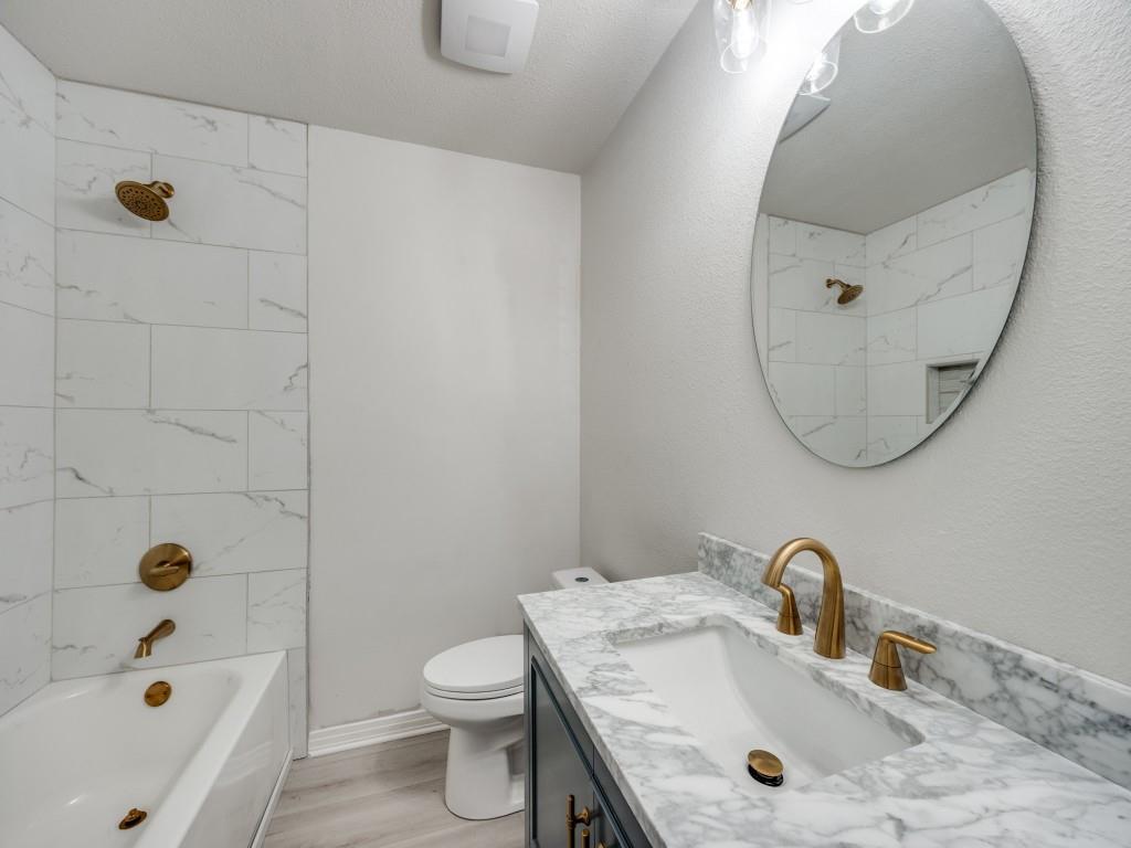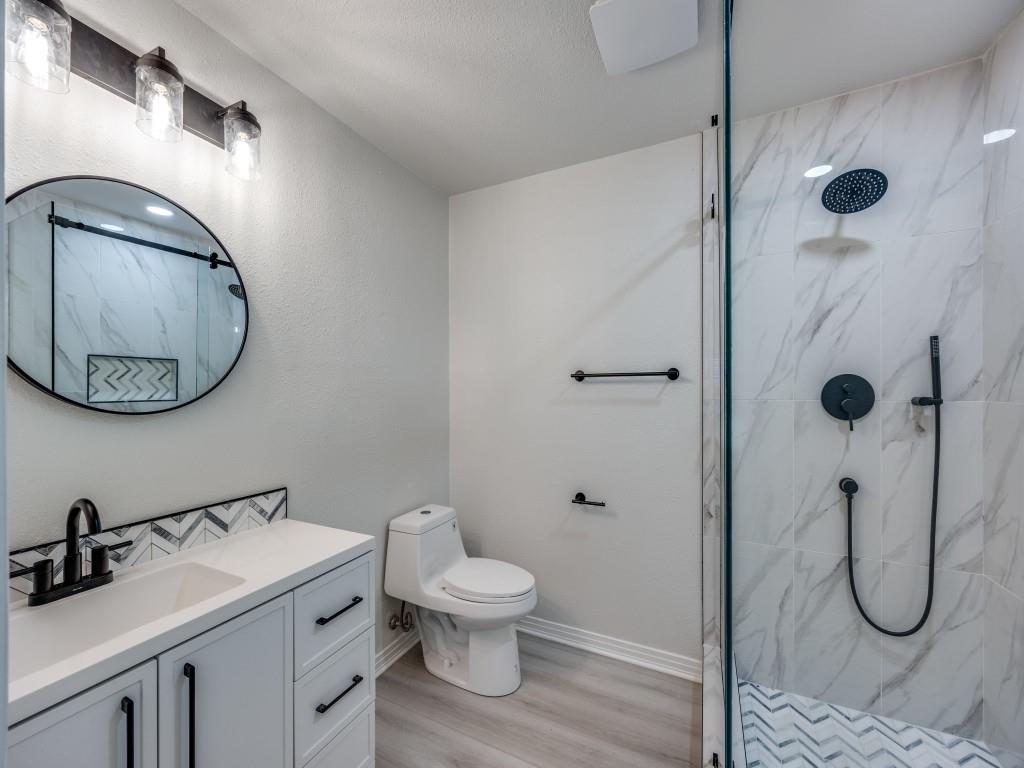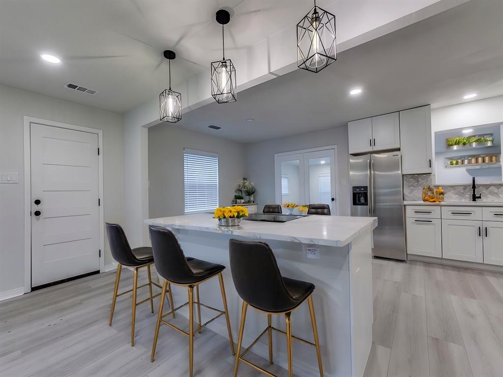 Fabulous completely remodeled jewel in Richardson Heights. This has all the goodies and more, with a bonus room that will delight. The open and spacious floor plan is evident from the minute you enter, with a view of dazzling kitchen island with quartz countertop bridging the entertaining and cooking spaces perfectly. Everything is new - windows, luxury vinyl plank flooring throughout the house, shaker soft close cabinetry in kitchen - includes full size pantry with roll out shelves. Beautiful tile work includes custom backsplashes in kitchen and primary bath. Both baths are gorgeous, unusual and elegant. The use of the large living-bonus room with separate mini split heating and cooling is only limited by your imagination. Awesome trees and very large fenced backyard complement this lovely corner lot.