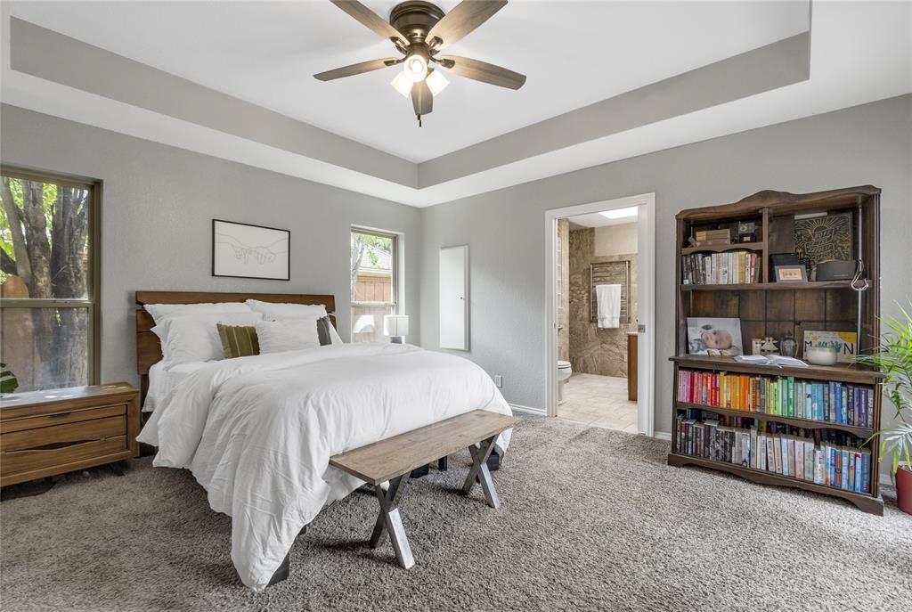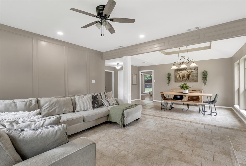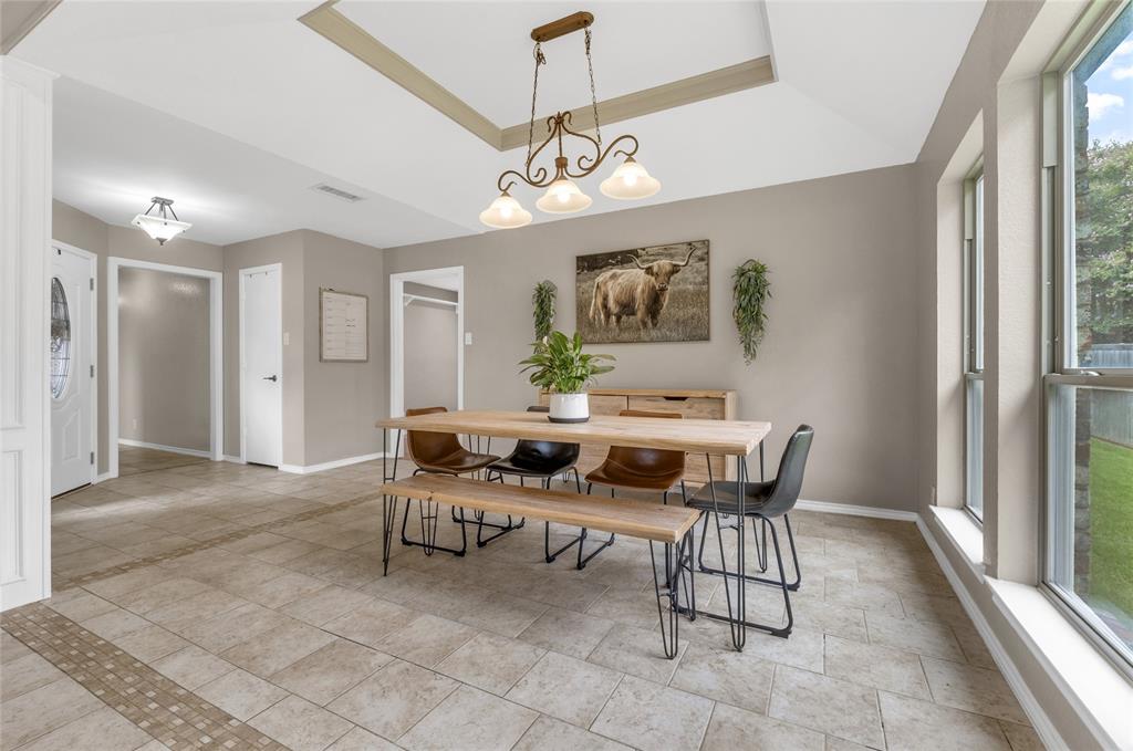 Beautifully maintained one story home in a prime Plano location offering comfort, style, and convenience. This move in ready property has strong curb appeal and an inviting interior filled with natural light. The thoughtful floor plan makes daily living and entertaining simple. The formal dining room with tray ceiling is perfect for gatherings. The spacious living area includes a fireplace and tile flooring that continues throughout the main spaces for a clean and cohesive look. The kitchen features freshly painted cabinets, stainless steel appliances, abundant storage, and a separate breakfast nook. The primary suite includes a custom walk in closet and a spa inspired bath with walk in shower, double vanity, heated tile floors, and heated towel racks. Three additional bedrooms are well sized and allow flexibility for guests, family, or office use. The one story design makes all spaces accessible and functional. Mature shade trees surround the property, and directly across the street is Santa Fe Trail Park with scenic views, walking trails, and natural wildflowers. Schools and additional parks are nearby, adding to the convenience of the location. This Plano home delivers a move in ready interior, thoughtful updates, and a desirable setting. Enjoy.