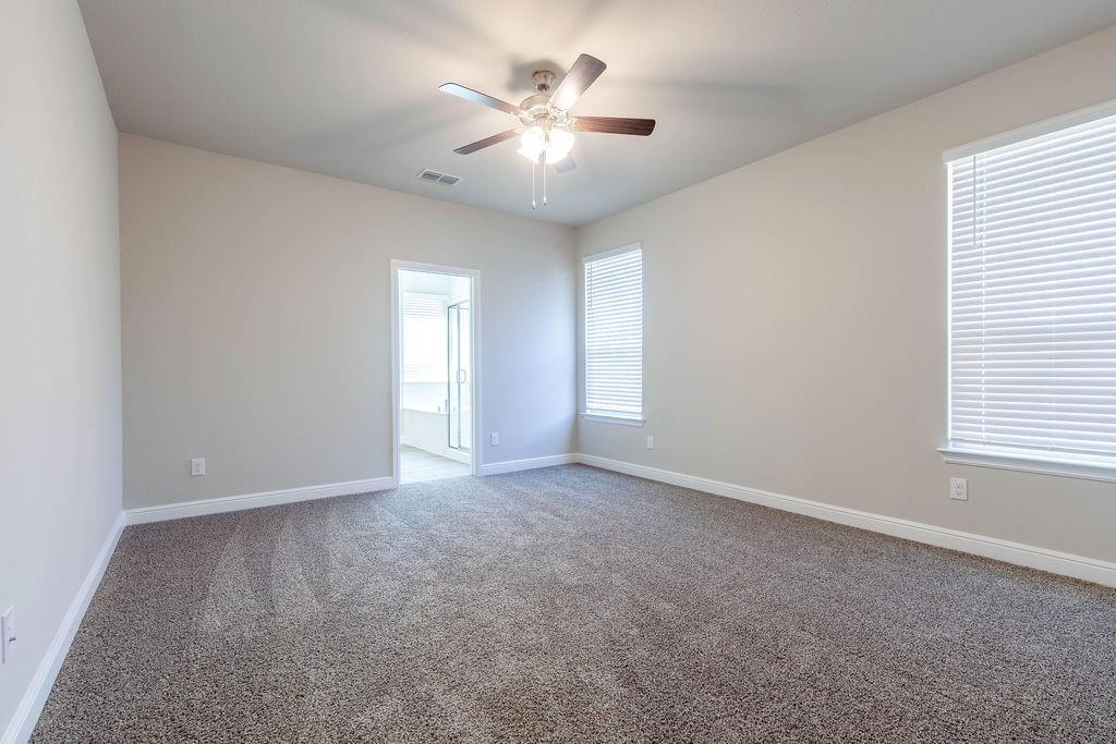 The private primary suite is a tranquil retreat with soft carpeting and a serene en-suite bathroom featuring elegant white cabinetry and white counters. The three secondary bedrooms offer plush carpeting and share a well-appointed bathroom, making this home as functional as it is beautiful.