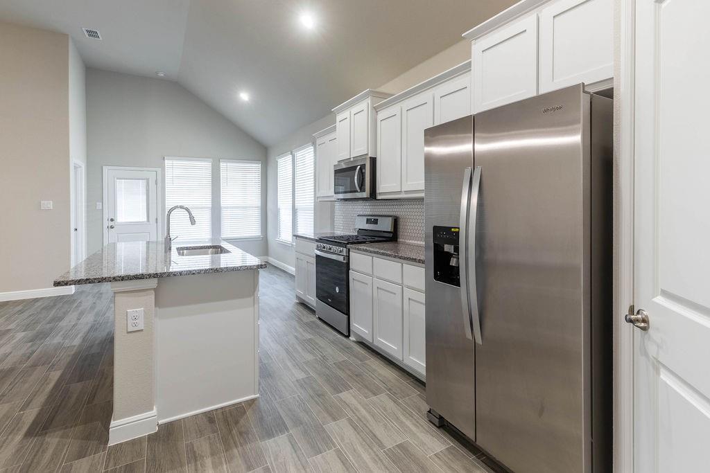 Inside, you’ll find gorgeous hardwood-look tile flooring throughout all the main living areas. The thoughtfully designed layout seamlessly connects the kitchen, dining, and family room, creating an inviting space for everyday living and entertaining. The kitchen is a modern chef’s dream, complete with stunning granite countertops, a gas cooktop, and stainless steel appliances.