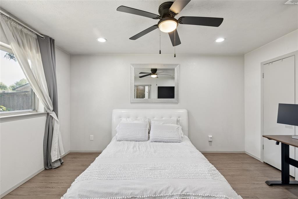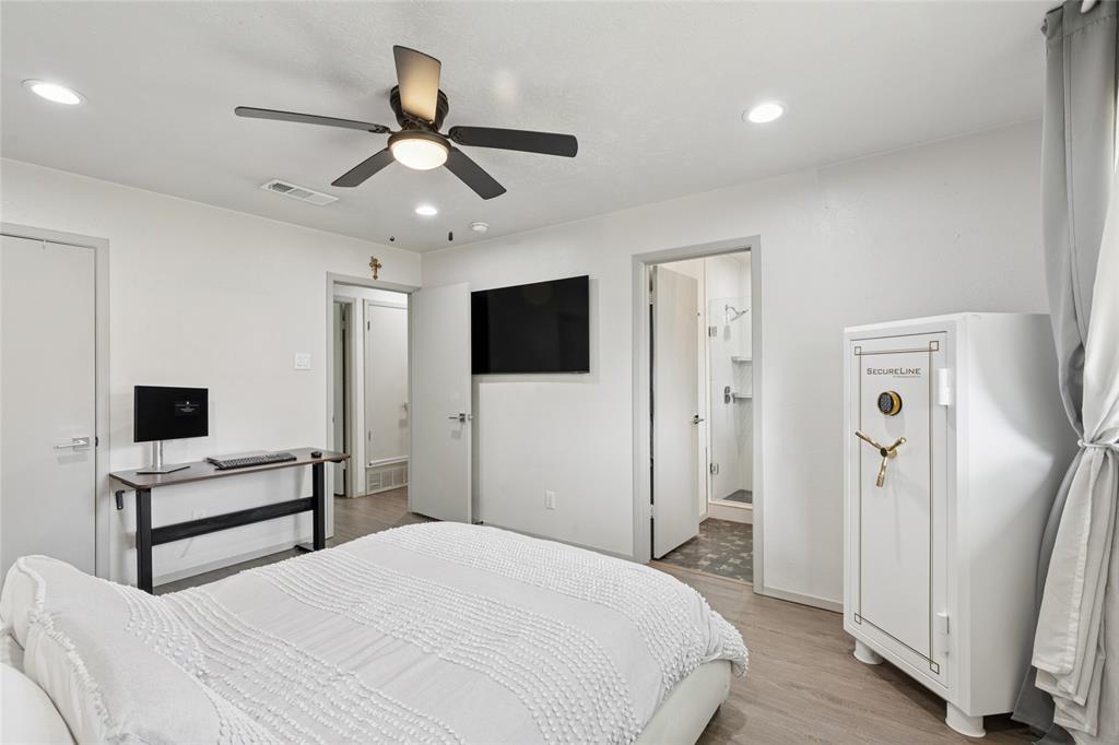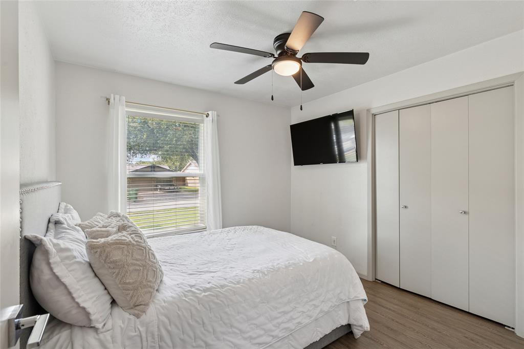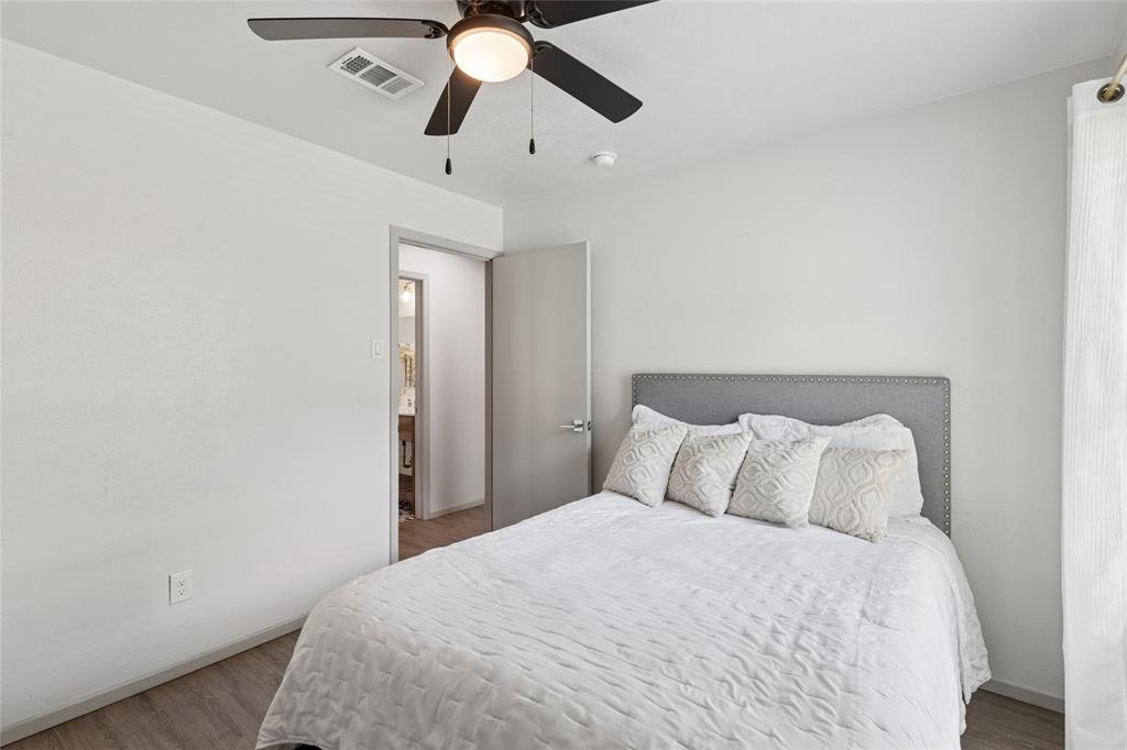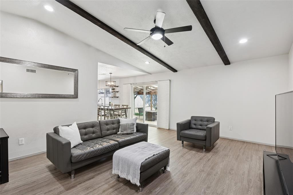 Luxury vinyl plank flooring throughout all living areas. The primary bedroom has an ensuite bathroom with updated walk-in shower and granite top vanity. The two secondary bedrooms have plenty of closet space and share an adjoining bathroom with refreshed tub and new fixtures. Sliding glass doors open to a private yard with covered patio and plenty of space for relaxing and friendly gatherings. Your two car garage has additional space for storage or gym equipment, so cleverly utilized by the present owners.