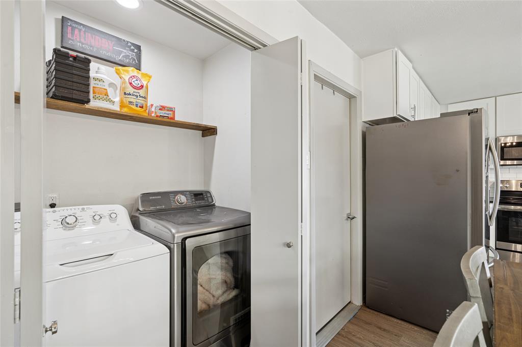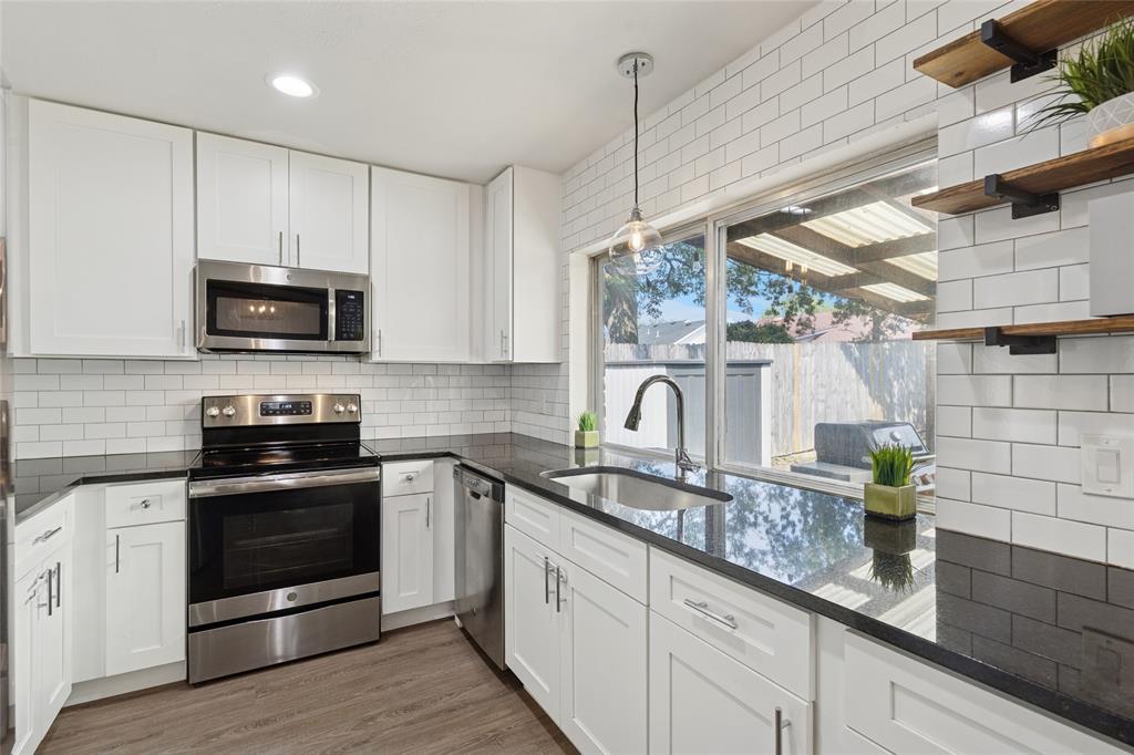 The well-thought out floor plan offers an open concept living area that flows into a clean and bright kitchen with stainless appliances and clean backsplash.