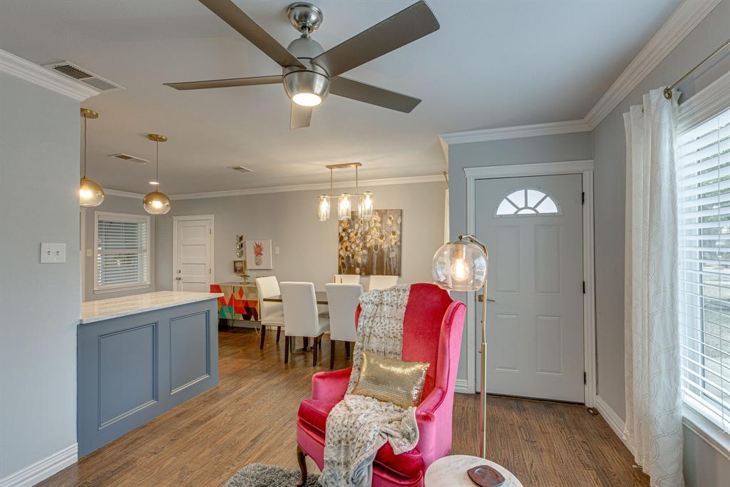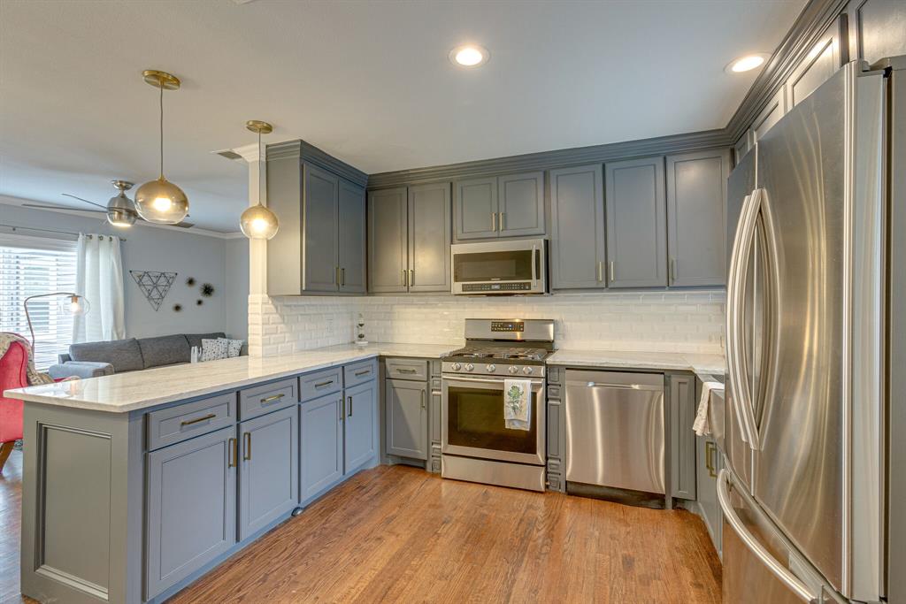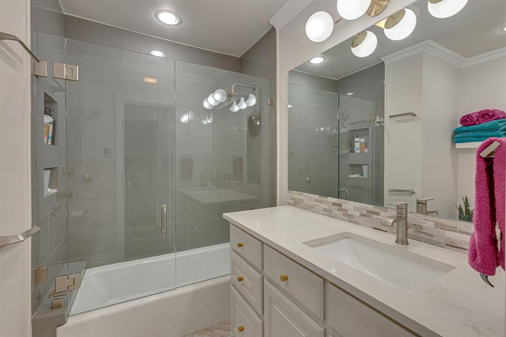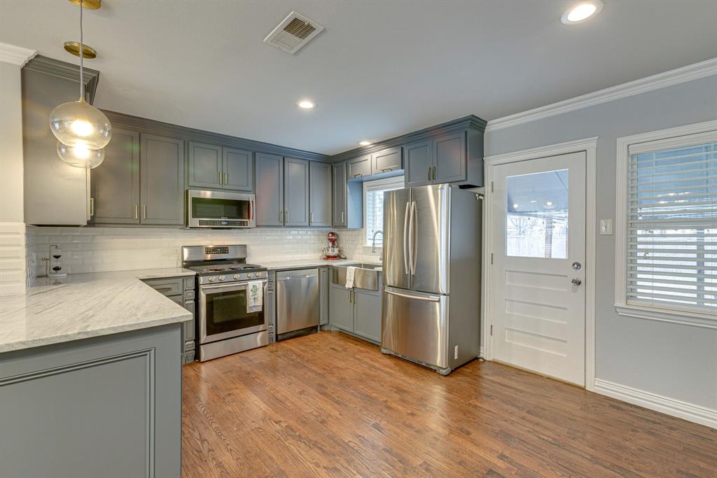 An extraordinary 3 bedroom cottage on a large tree lined lot in the heart of Dallas’ popular and re-developing Midway Hollow. Beautifully updated with rich hardwood flooring, luxury bath finishes (with heated floor) and modern fixtures. A bright, modern kitchen includes updated cabinetry, 5 burner gas cooktop, quartz counters, stainless appliances and LED lighting. Hi-efficiency Carrier HVAC and Rinnai tankless water heater installed in 2017. The backyard features a huge covered patio overlooking a large lawn with separate fire-pit. Single car attached garage with laundry connections and access to back yard.