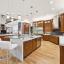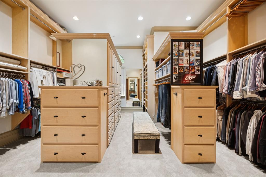 A spectacular chef’s kitchen, recently rebuilt boasts walnut cabinetry, Sub-Zero refrigerator, freezer and a two drawer under-counter veggie fridge, Viking gas range, quartzite waterfall island, dual Bosch dishwashers, and four ovens. It seamlessly connects to the breakfast area and living room.
