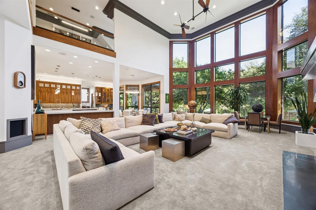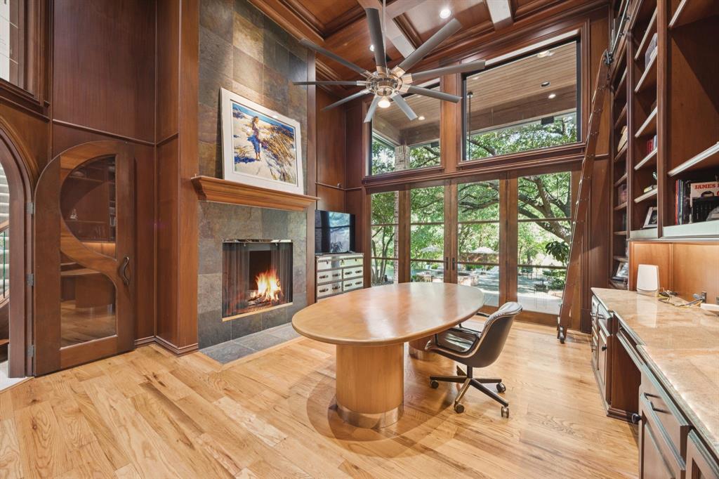 Soaring 23’ ceilings WITH dramatic floor-to-ceiling glass walls ,are featured in the living room, entry, study and excercise. The study showcases rich mahogany millwork ,cabinetry, and 8’ custom doors.
