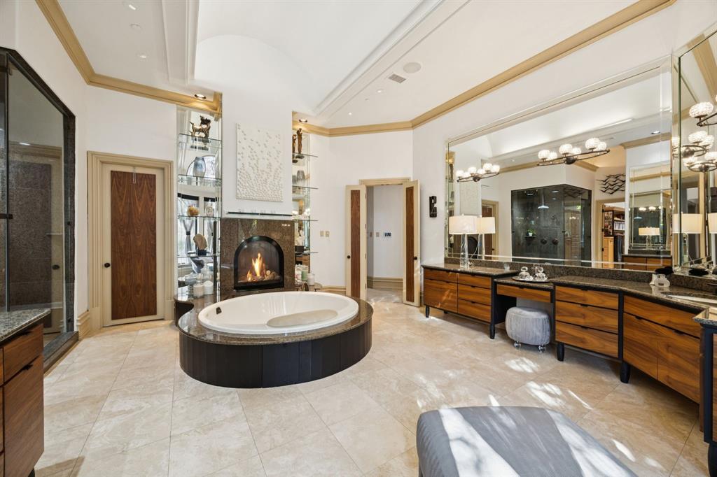 The private primary suite includes a fireplace, sitting area, spa-like bath with steam shower and soaking tub, and a custom 400-sq-
