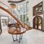 The entry impresses with 10’ mahogany and glass curved doors, a sweeping staircase, and expansive porcelain flooring flowing into living spaces which have commanding views of the pool, creek, and courtyard.