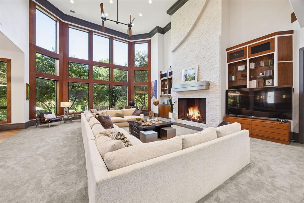 Perfect for entertaining, the home features multiple fireplaces, elegant dining, and a spectacular living room showcasing a 23’ tall unique white stone