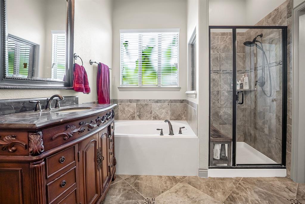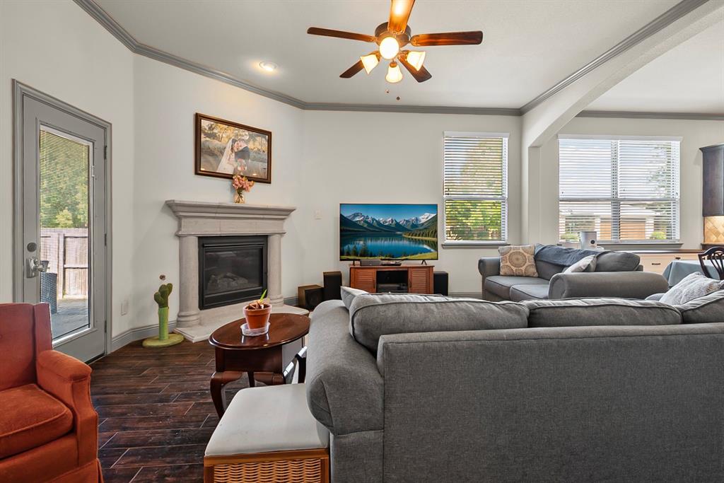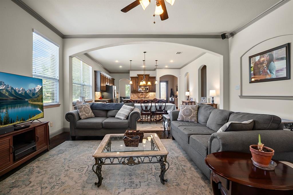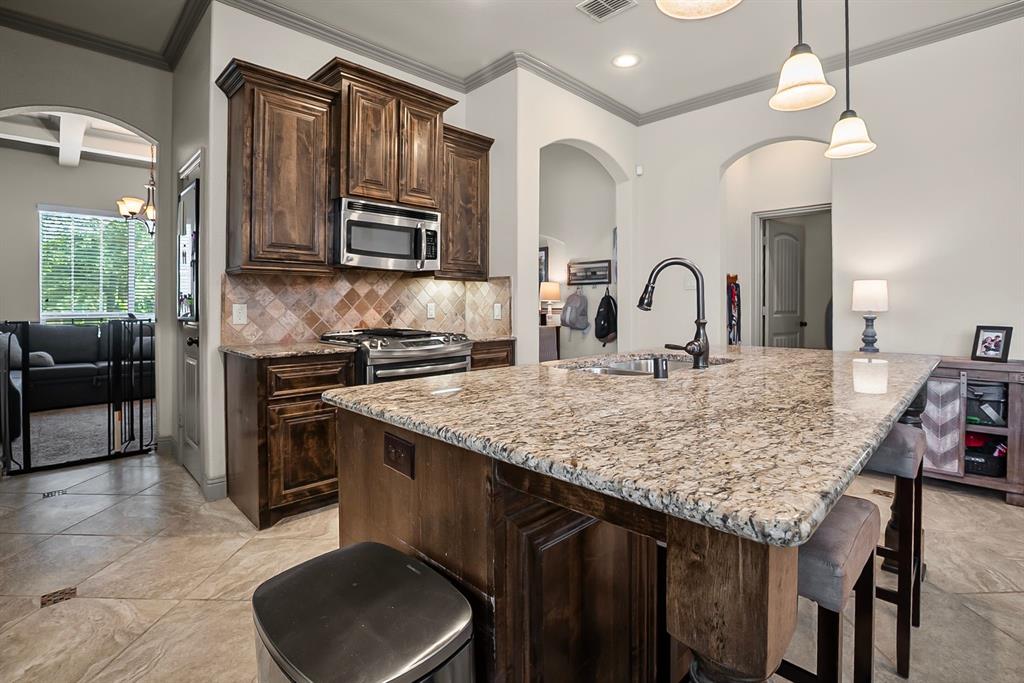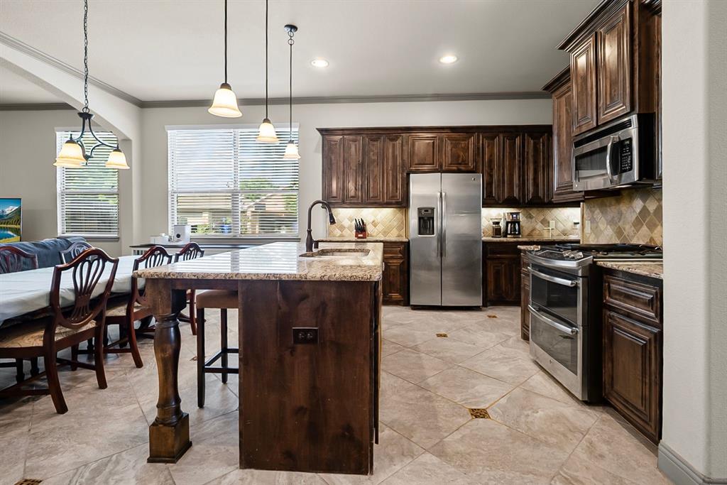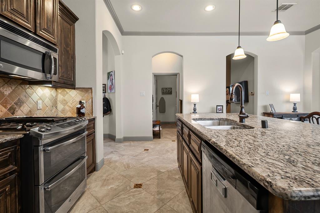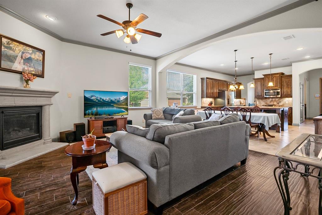 Well Maintained, Corner lot, 4 bedrooms, 2 bath, open floor plan home!! Many builder upgrades; including decorative tile, granite counter tops, Gourmet kitchen, with stainless appliances, 5 burner gas range, microwave, dishwasher, pantry and large island. Relax in the Luxurious Master bedroom and en suite; decorative mirrors, separate vanities, separate walk-in shower, jetted tub. The split bedroom plan accommodates 3 guest bedrooms with over sized closets and a full bath. Current owner is using one of the guest bedrooms as a Media room! Enjoy those cold winter nights around the beautiful stone surround gas log fireplace with direct vent, glass, and blower. Living area, which is open to breakfast and kitchen for total engagement while entertaining family and friends. Outdoors, you can lounge comfortably on the Large covered patio. More than enough room for play and enjoyment within the backyard surrounded by the 6 ft wood privacy fence on this corner lot! Property also includes a full-yard sprinkler system and home security system. Community swimming pool, pond, jogging trails, sidewalks, greenbelt. Priced to sell! Won't last long!
