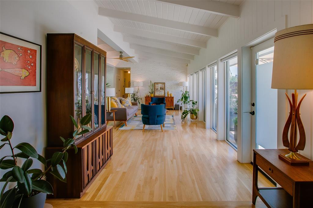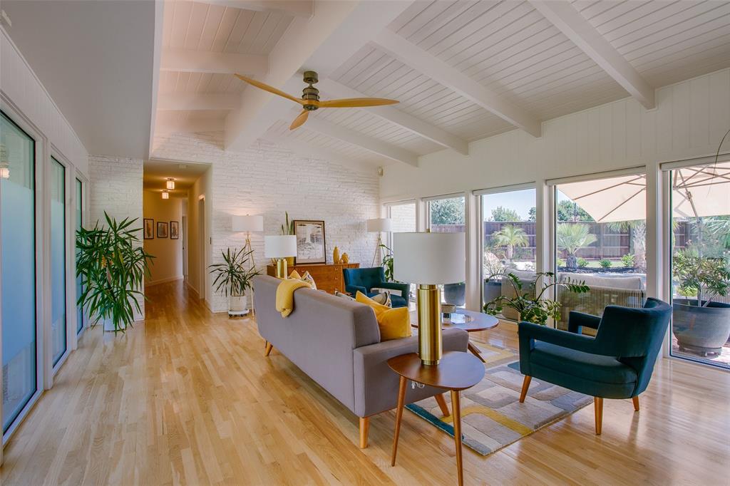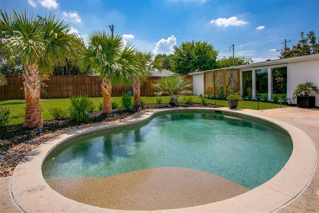 Welcome to 7806 Midbury Dr, a stunning single-family Mid Century Modern residence nestled in the heart of Jan Mar. This beautifully renovated home has been perfectly designed for both comfort, entertainment and sophistication. Situated on a desirable .41 acre corner lot, this three-bedroom, two-and-a-half-bathroom house boasts a seamless blend of modern amenities and classic charm. Step into the expansive living area, illuminated by floor-to-ceiling windows that provide an abundance of natural light and stunning views of the lush surroundings. The exposed brick walls and solid oak hardwood floors add warmth and elegance to the home’s inviting atmosphere. The chef’s kitchen is a culinary dream, featuring a convenient breakfast bar and top-of-the-line Thermador appliances, ideal for entertaining or preparing gourmet meals. Retreat to the primary ensuite, a private sanctuary complete with a separate shower and tub, offering a spa-like experience in the comfort of your own home. Each bedroom is equipped with custom closets, ensuring ample storage space and organization. The private rear yard with open patio and sparkling pool create a perfect oasis for relaxation and entertainment, making it an ideal setting for gatherings or quiet evenings under the stars. Conveniently located near the JCC, shopping, restaurants and 10 minutes to downtown Dallas! A must see.