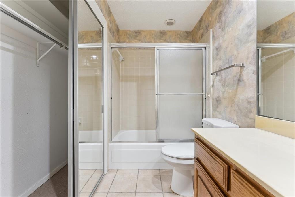 Inside, the home features an open-concept layout filled with natural light, a cozy fireplace with built-ins, and a private patio perfect for morning coffee or evening relaxation. The functional kitchen flows effortlessly into the dining space, making it ideal for entertaining. Upstairs, two spacious bedrooms provide privacy and comfort, each with ample closet space and nearby full bathrooms.