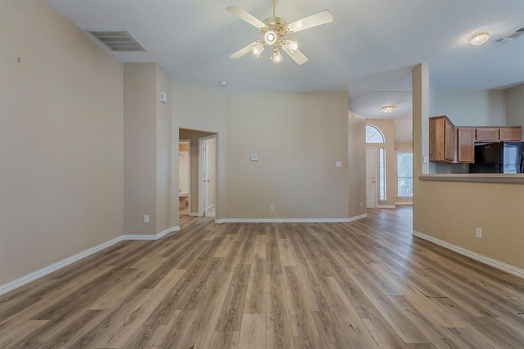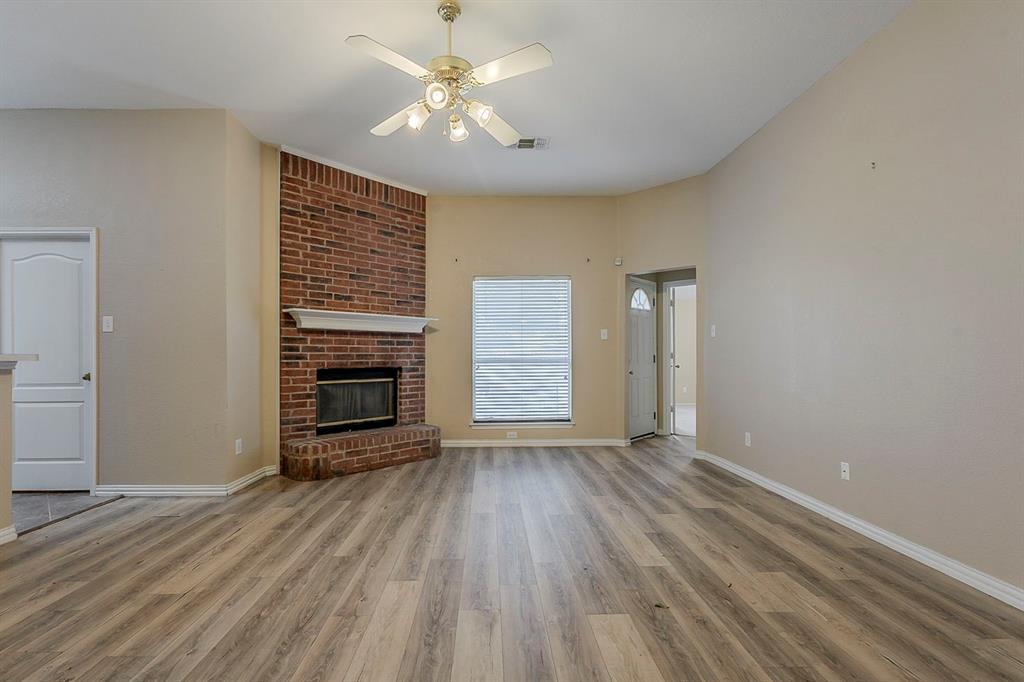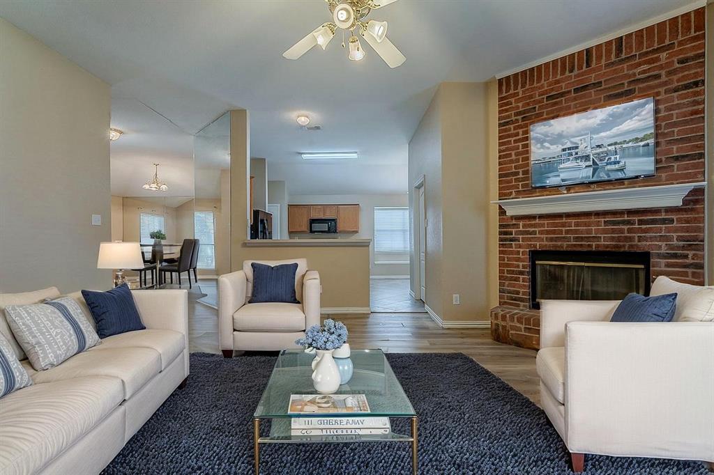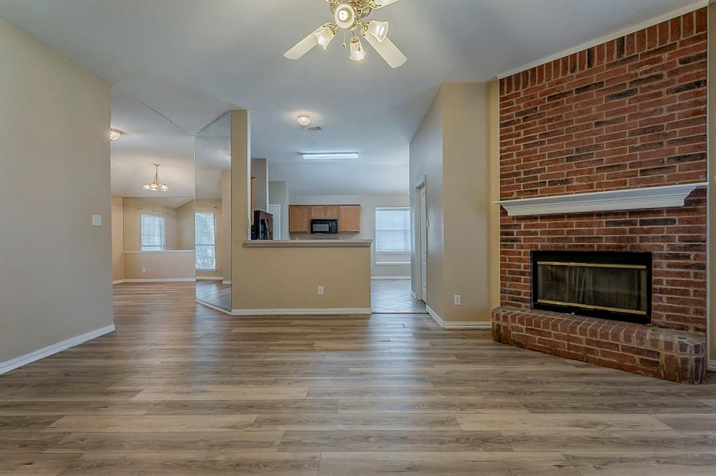 Beautiful 1-story home featuring 4 bedrooms and 2 bathrooms. Enjoy a kitchen with island and bar, cozy fireplace in the living room, double vanity, and a spacious closet. The large wood-fenced backyard is perfect for outdoor living. Schedule a showing today! One or more photos have been virtually staged.