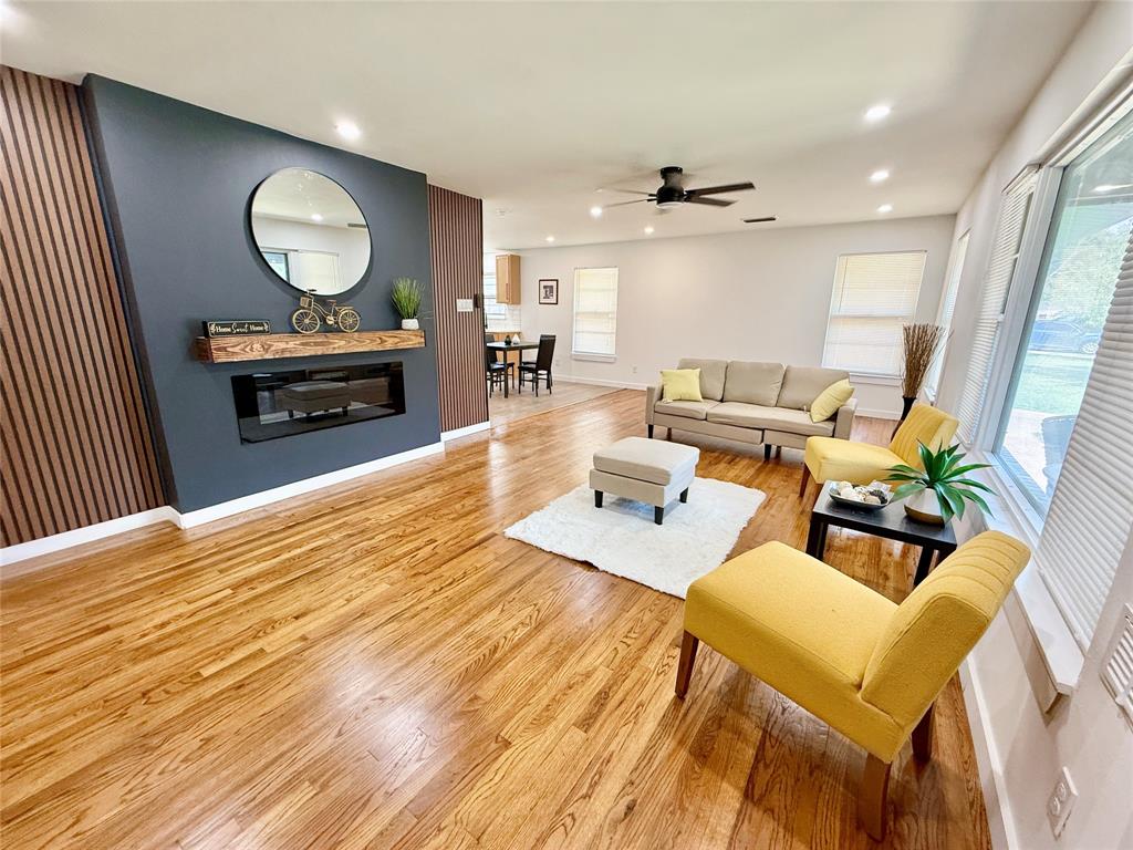 REMODELED AND UPDATED HOME! The WOW moments start when you open the front door to the big living room with a beautiful Electric fireplace and hardwood floors, separate dining area opens up to upgraded kitchen with quartz countertops and island for family gatherings, stainless steel appliances. Master bedroom offers a big walk in closet and modern bathroom. Full size laundry room. What is unique about this home is the large separate party room with grill in back yard, Separate 2 car garage and access to the big back yard. This is a must see home. Every effort was made to represent this property accurately. It is advised that all information be verified, especially, schools, taxes, and square footage.