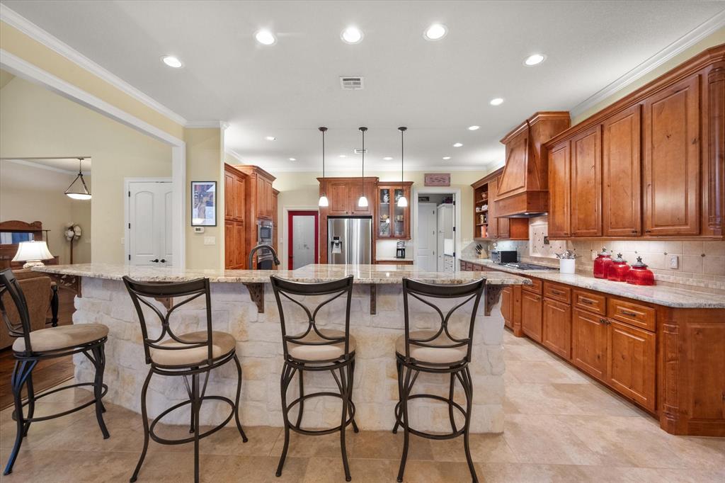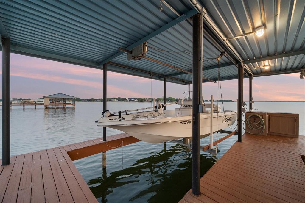Welcome to lake living! This one-owner, open water home on Richland Chambers Lake offers the perfect blend of comfort, charm and fun. With 3 bedrooms and 2.5 baths, there's plenty of room for family and friends to relax and enjoy the waterfront lifestyle. The heart of the home is the kitchen, designed for gathering. A large island makes the perfect spot for casual meals or chatting while cooking, while the gas cooktop, big pantry, and generous counter spaces make meal prep a breeze. Custom spice storage and a built in bar add to the fun. The laundry room even includes a sink for added convenience. Step outside to a fabulous patio overlooking the water---ideal for morning coffee, weekend cookouts, or cozy evenings by the fire pit. This home sits on a large lot giving you more privacy with beautiful trees and landscaping. Just steps away, your private boat dock with two lifts makes getting out on the lake quick and easy. An oversized three-car garage provides room for cars, toys, and even a workshop or hobby area. Whether you are looking for a weekend retreat or a full-time home, this property invites you to slow down, unwind, and enjoy all that lake life has to offer.