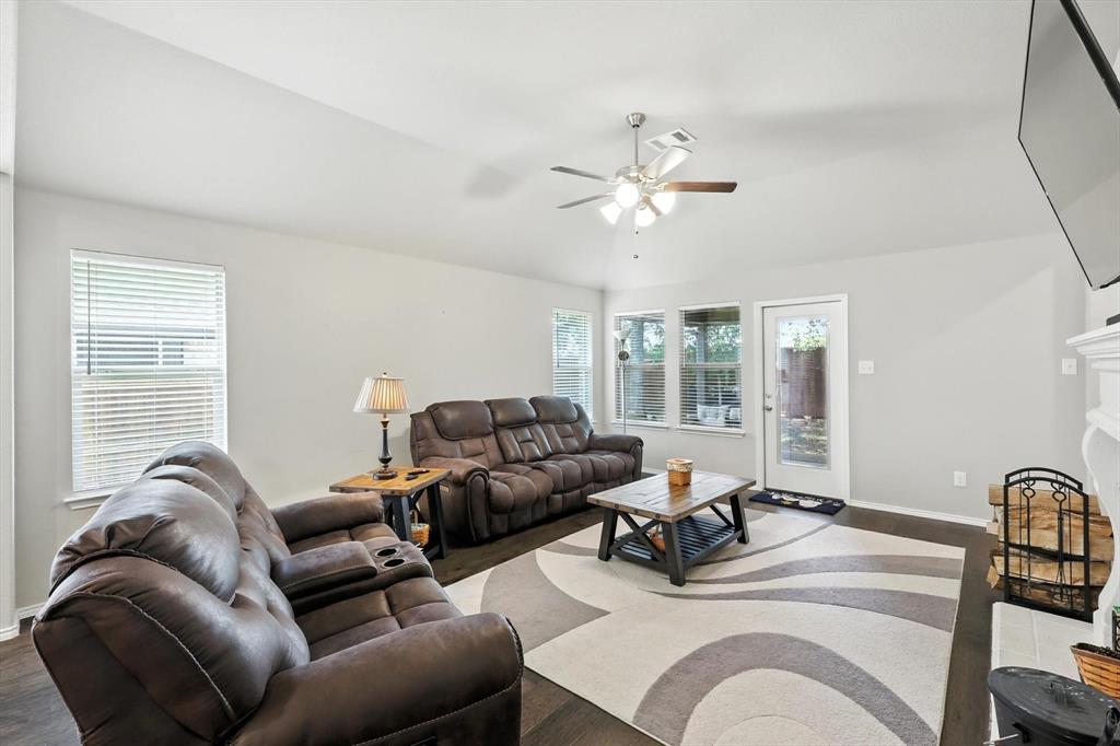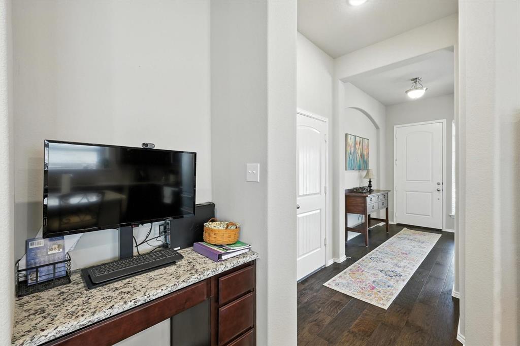 Gorgeous single-story in Rosewood Estates with beautiful brick and stone elevation! Inside you will find 3 bedrooms, 2 full baths, formal dining area, dedicated study space with French doors, and 2-car garage! Upgrades and amenities include neutral paint tones, rich hardwood flooring throughout main living areas, open-concept layout great for entertaining, spacious family room with cozy fireplace, split secondary bedrooms for added privacy, and MORE! Gourmet kitchen boasts granite countertops with a subway tile backsplash, large island with breakfast bar, stainless appliances including an electric range, and adjacent eat-in area. Primary suite secluded at the rear of the home offers a luxurious ensuite bath with a dual sink vanity, garden tub with separate shower, and large walk-in closet. Tranquil backyard nestled beneath mature shade trees is complete with a large covered patio area!