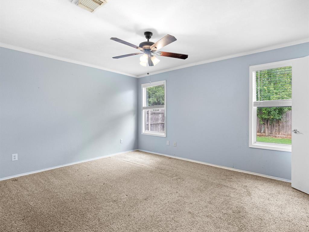 The primary suite boasts a beautiful bathroom with granite countertops. Step outside to a large backyard complete with a covered patio. Recently replace roof.