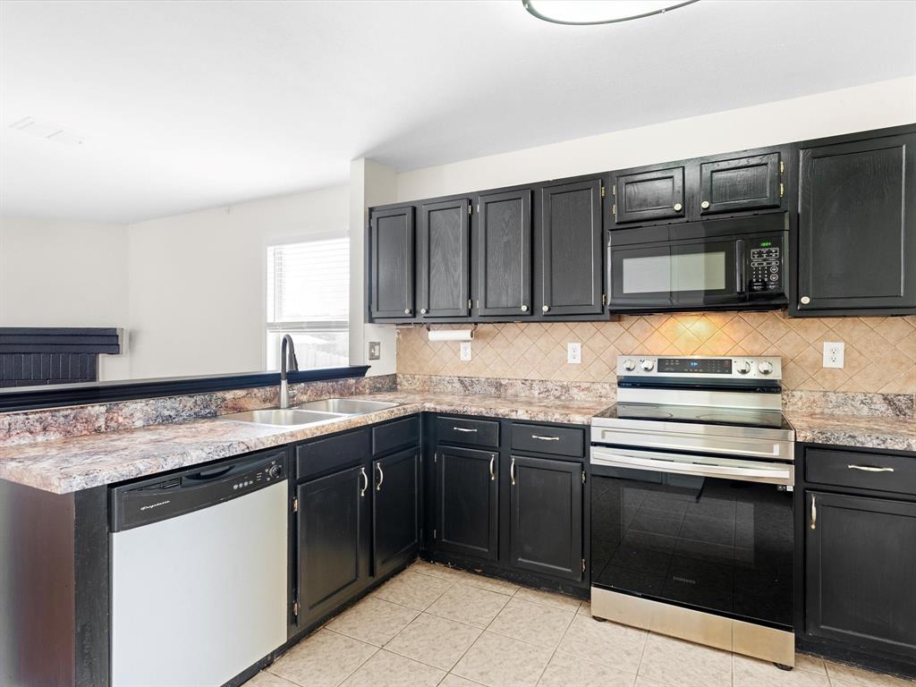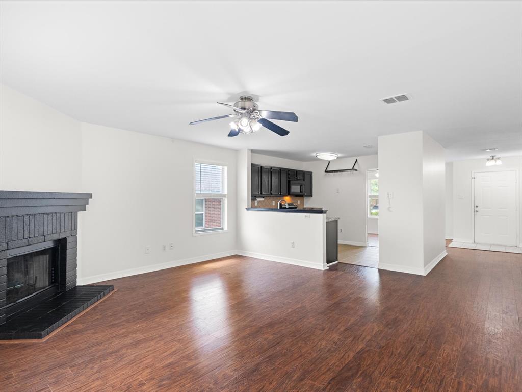 The cozy kitchen is equipped with stainless steel appliances, a walk-in pantry, and a stylish tile backsplash, and opens seamlessly to the spacious living area featuring a fireplace—perfect for entertaining or relaxing.