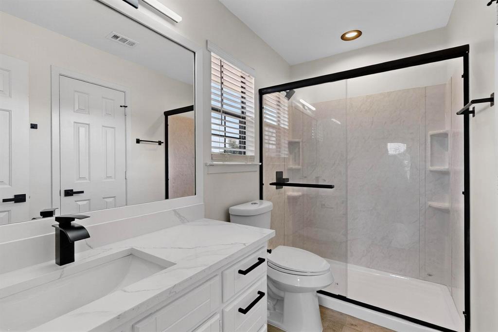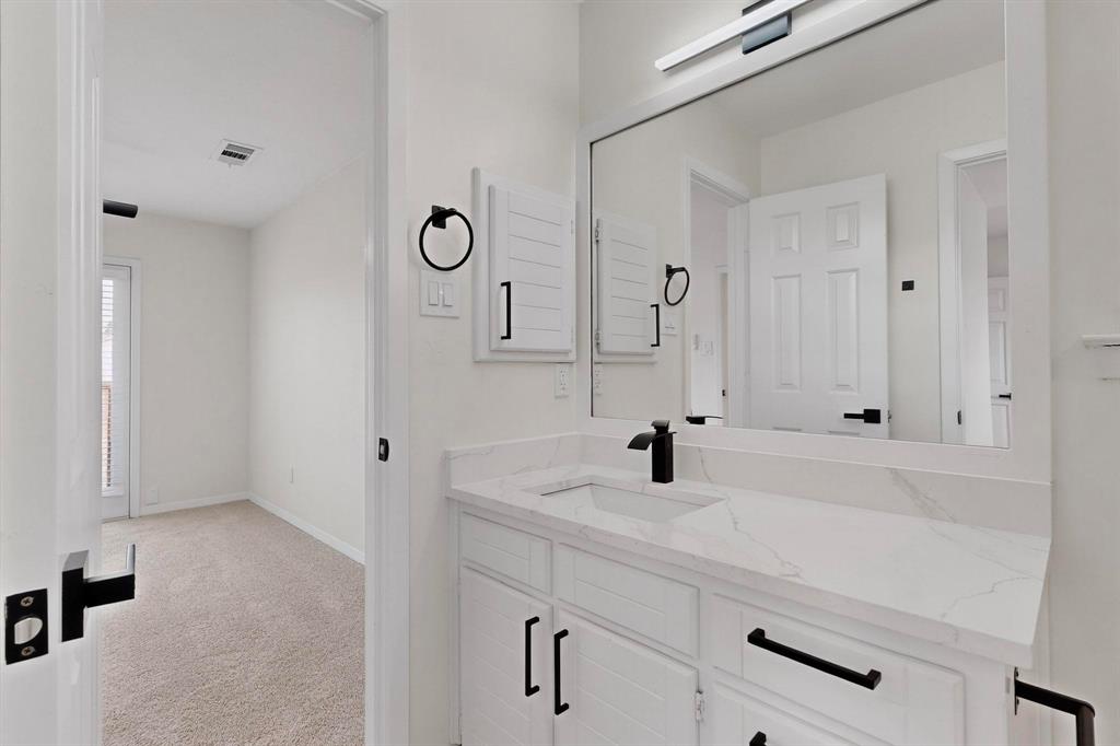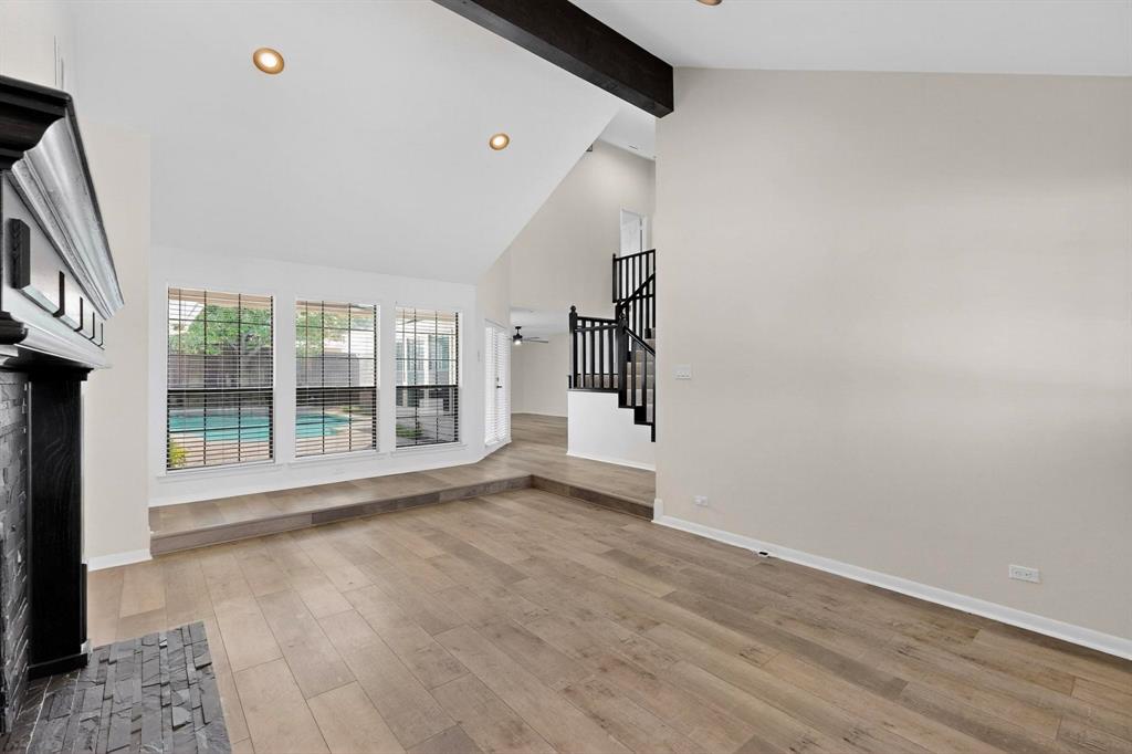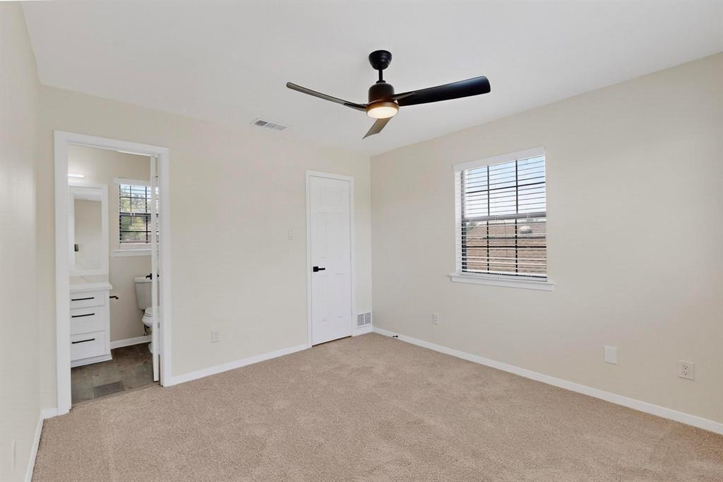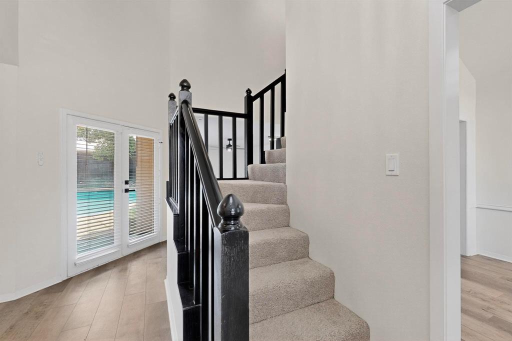 Welcome to this beautifully renovated home in the heart of Carrollton nestled in a quiet, established neighborhood! This 4-bedroom, 3-bath spacious home features a thoughtfully designed floor plan with two generous living areas, ideal for entertaining or relaxing with family. The kitchen offers ample cabinet space, quartz countertops, stainless steel appliances and a cozy breakfast nook. The primary suite is conveniently located on the main floor and includes a spa-like bath with dual vanities, a soaking tub, separate shower, and walk-in closet. An additional bedroom on the first floor is perfect for guests or a home office setup. Upstairs, you'll find two additional bedrooms and a jack and jill bathroom. Step outside to enjoy the peaceful backyard retreat with a sparkling pool, covered patio, landscaping and plenty of room for outdoor fun. Additional highlights include a formal dining room, wood-burning fireplace, updated flooring, vaulted ceilings and a two-car garage. Beyond the property, residents enjoy a rare lifestyle—this neighborhood is surrounded by a 100-acre city-owned greenbelt with 4 stocked fishing ponds and miles of scenic hike & bike trails. All of this with NO HOA restrictions! Whether you’re seeking tranquility, recreation, or convenience, this home offers it all. Don’t miss the chance to own a one-of-a-kind residence with unmatched views and an exceptional setting conveniently located near schools, parks, shopping, and major highways, this home blends comfort, style, and accessibility—ready to welcome you home!
