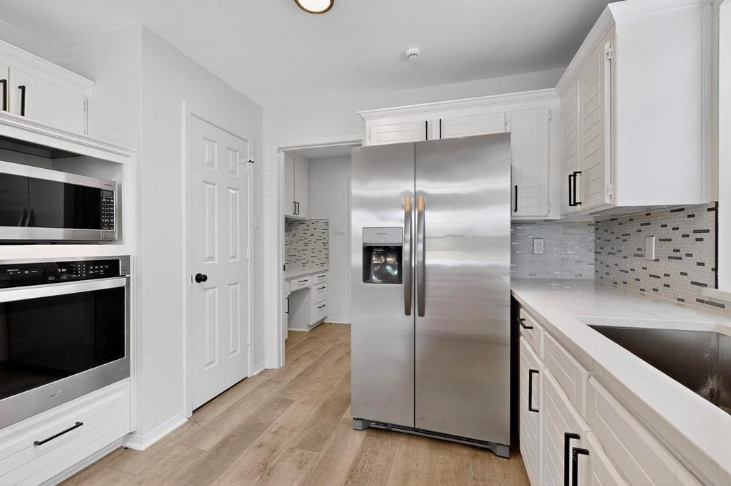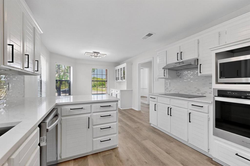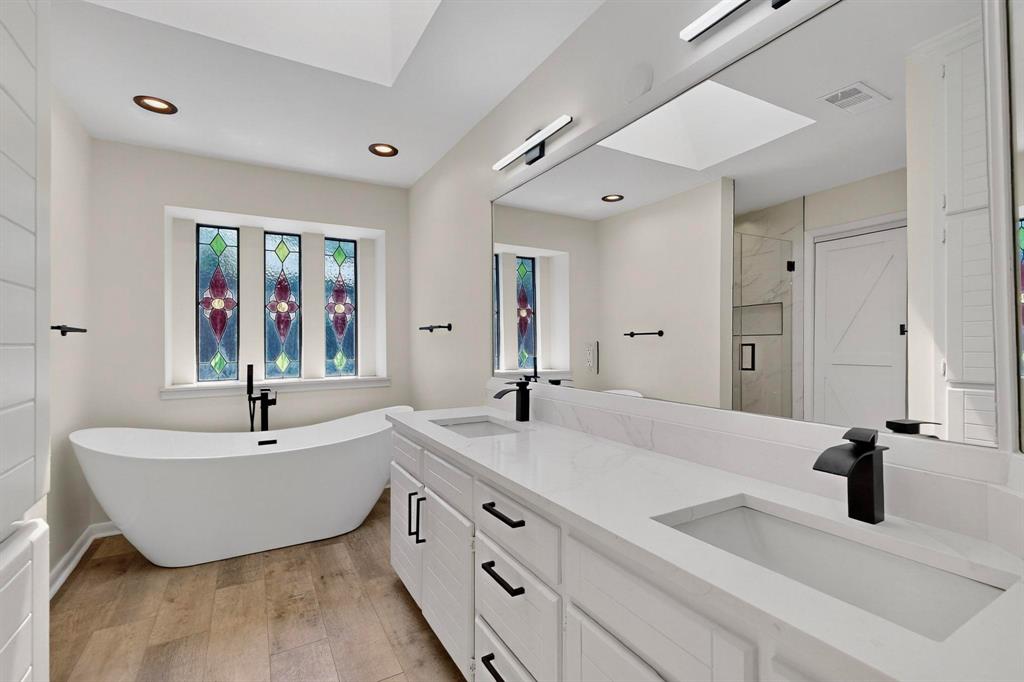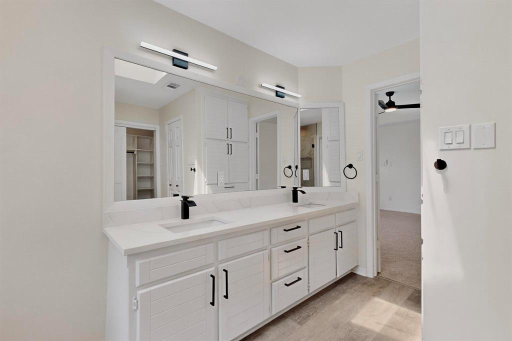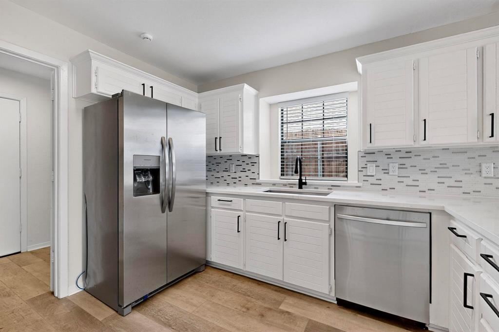 Welcome to this beautifully renovated home in the heart of Carrollton nestled in a quiet, established neighborhood! This 4-bedroom, 3-bath spacious home features a thoughtfully designed floor plan with two generous living areas, ideal for entertaining or relaxing with family. The kitchen offers ample cabinet space, quartz countertops, stainless steel appliances and a cozy breakfast nook. The primary suite is conveniently located on the main floor and includes a spa-like bath with dual vanities, a soaking tub, separate shower, and walk-in closet. An additional bedroom on the first floor is perfect for guests or a home office setup. Upstairs, you'll find two additional bedrooms and a jack and jill bathroom. Step outside to enjoy the peaceful backyard retreat with a sparkling pool, covered patio, landscaping and plenty of room for outdoor fun. Additional highlights include a formal dining room, wood-burning fireplace, updated flooring, vaulted ceilings and a two-car garage. Beyond the property, residents enjoy a rare lifestyle—this neighborhood is surrounded by a 100-acre city-owned greenbelt with 4 stocked fishing ponds and miles of scenic hike & bike trails. All of this with NO HOA restrictions! Whether you’re seeking tranquility, recreation, or convenience, this home offers it all. Don’t miss the chance to own a one-of-a-kind residence with unmatched views and an exceptional setting conveniently located near schools, parks, shopping, and major highways, this home blends comfort, style, and accessibility—ready to welcome you home!