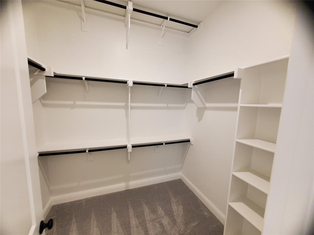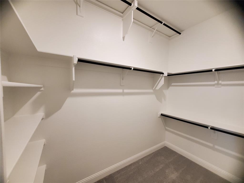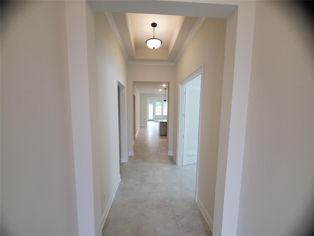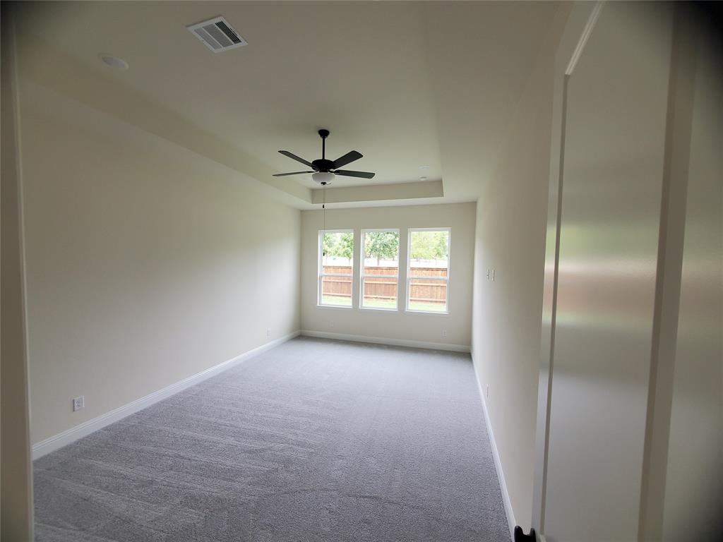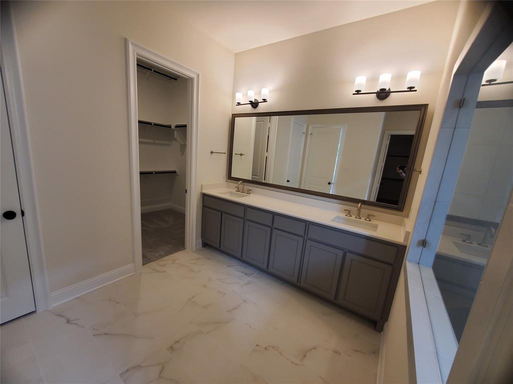 The luxurious extended primary suite offers added comfort and space boasts tray ceilings, two large walk-in closets, dual vanities, a spa-like extended oversized shower, and linen storage. Secondary bedrooms are generously sized, with one offering a private en-suite bath and walk-in closet.
